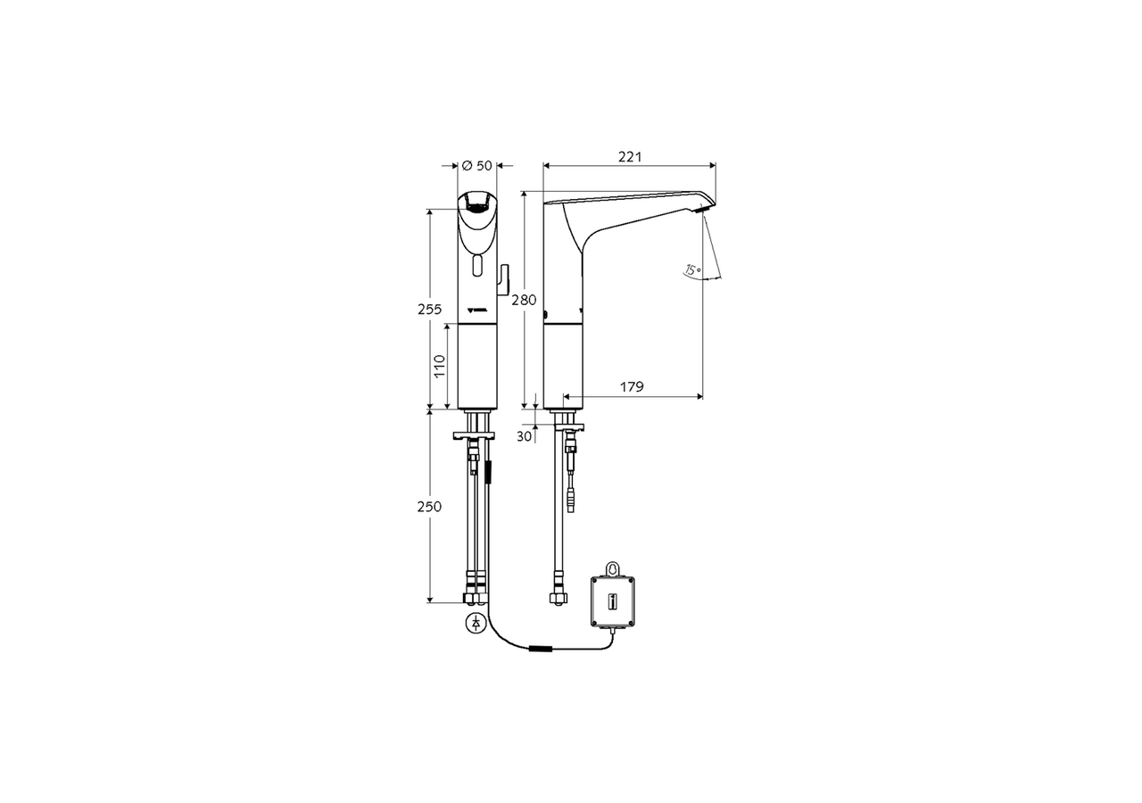 Capteur à commande infrarouge. Fonctionnement sur piles. Convient pour la mise en réseau grâce au système de gestion d'eau SWS de SCHELL. Paramétrable via SCHELL Single Control SSC.