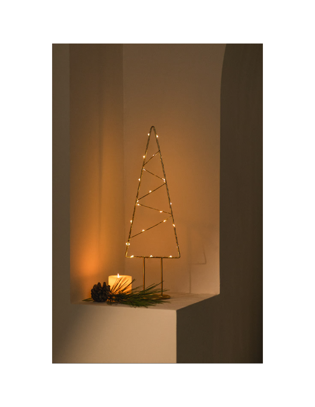 Description Arbre de Noël avec lumières LED Gazpie Dans toute décoration de Noël, le sapin de Noël est indispensable, et c'est pourquoi chez SKLUM nous vous offrons la meilleure sélection possible avec des options originales qui rempliront votre maison de magie. Découvrez notre Sapin de Noël avec lumières LED Gazpie, un complément décoratif original qui apporte une touche de sophistication et d'élégance. Gazpie offre 25 LED qui illuminent et décorent sa structure en fer résistant avec une finition dorée. Il est idéal pour placer dans votre salon, entrée ou bureau, créant ainsi une atmosphère plus chaleureuse et accueillante pour ces jours d'hiver froids. N'attendez plus et procurez-vous-le ! Il fonctionne avec 3 piles modèle AA non incluses. Pour un entretien correct, nous conseillons un nettoyage avec un chiffon humide en évitant l'utilisation de produits chimiques. Dans certains cas, les images, les dimensions et les couleurs, ainsi que les noms, sont orientatifs. Tout ce que vous voyez sur l'écran peut être altéré par différents facteurs, entre autres, la configuration de votre écran, la lumière ambiante, l'angle de vision, etc. Si le client désire en savoir plus, il devra contacter notre service client car les retours produits dû à ce motif, seront à la charge du client.
