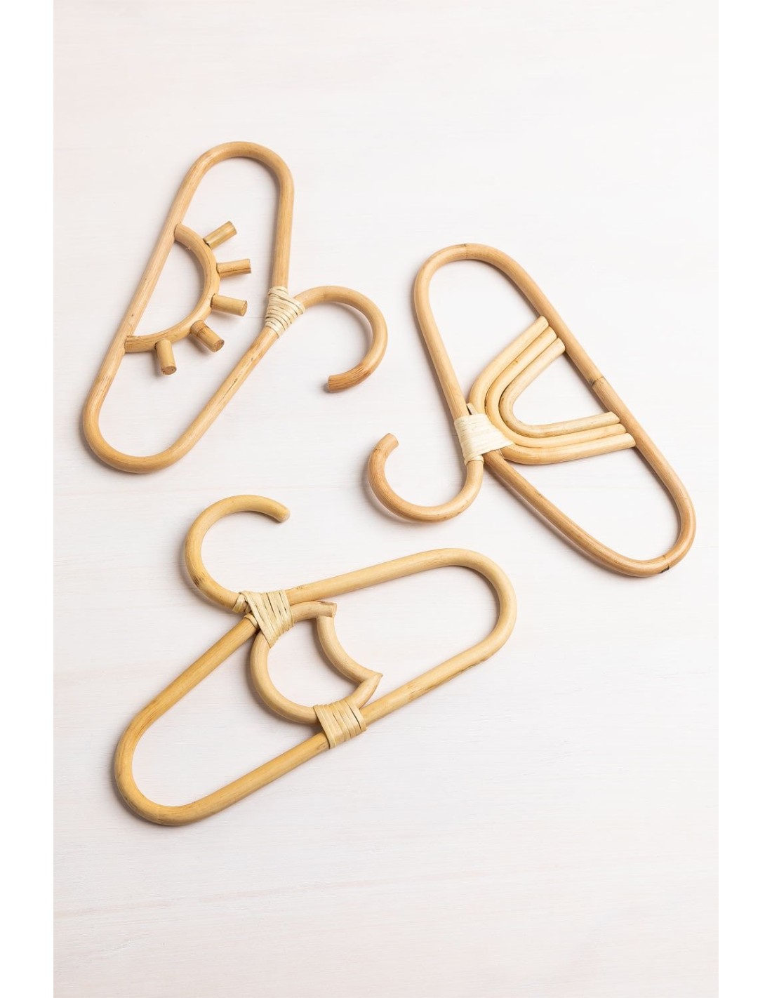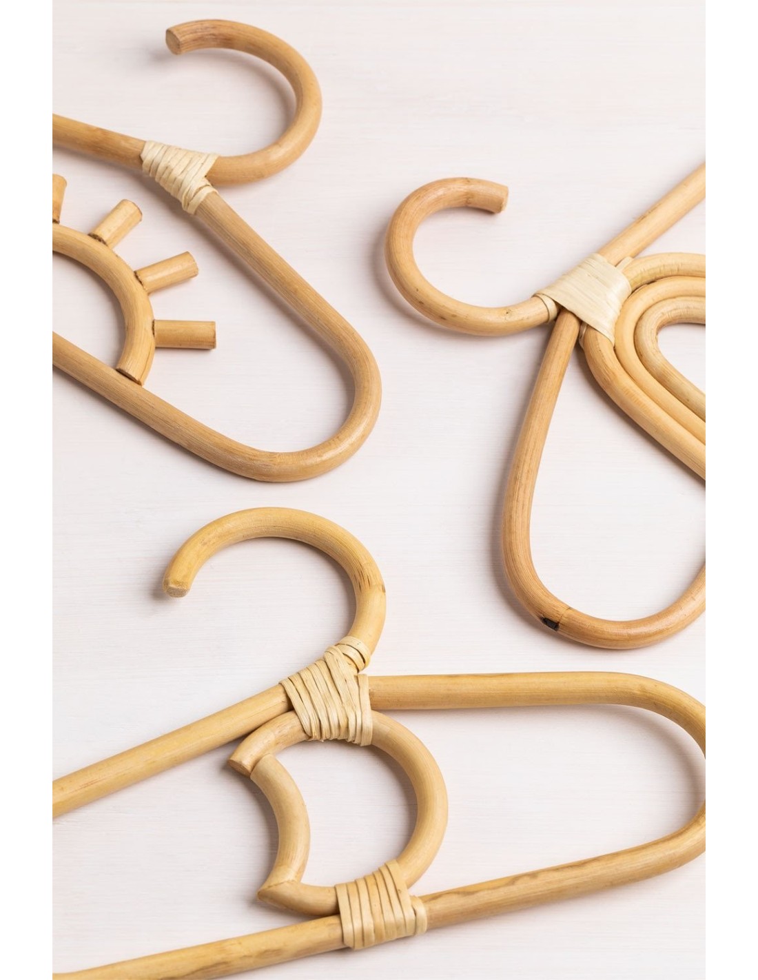 Description Set de 3 cintres en rotin Binns Kids Nous vous proposons le set de 3 cintres en rotin Binns Kids au design naturel et exotique, fabriqués artisanalement en rotin, un matériau qui leur confère une plus grande résistance et durabilité. En raison de leur fabrication artisanale, ils peuvent présenter de petits détails ou variations qui en font un set unique et exclusif. Leurs 3 designs originaux réalisés à la main nous rappellent un soleil, une lune et un arc-en-ciel qui leur donnent sans aucun doute une personnalité et un style originaux. Binns est un porte-manteau design parfait pour suspendre les vêtements des plus petits de la maison et garder leur chambre organisée et propre. Pour le nettoyage, nous conseillons d’utiliser un chiffon humide et d’éviter l’usage de produits chimiques. Dans certains cas, les images, les dimensions et les couleurs, ainsi que les noms, sont orientatifs. Tout ce que vous voyez sur l'écran peut être altéré par différents facteurs, entre autres, la configuration de votre écran, la lumière ambiante, l'angle de vision, etc. Si le client désire en savoir plus, il devra contacter notre service client car les retours produits dû à ce motif, seront à la charge du client.