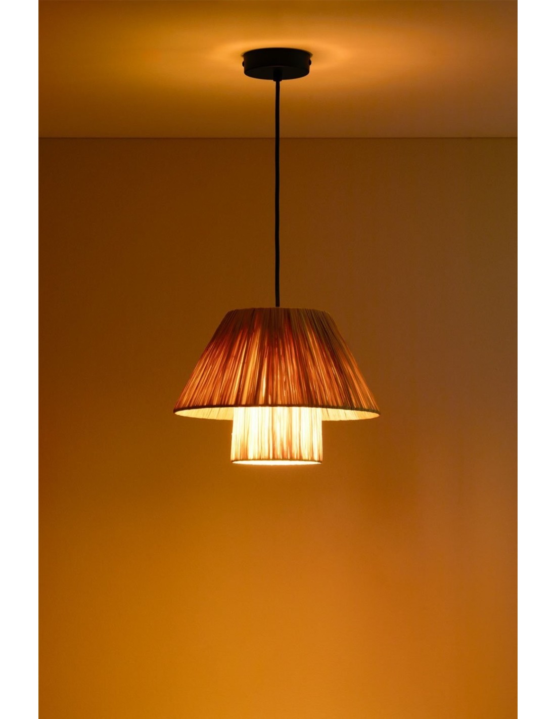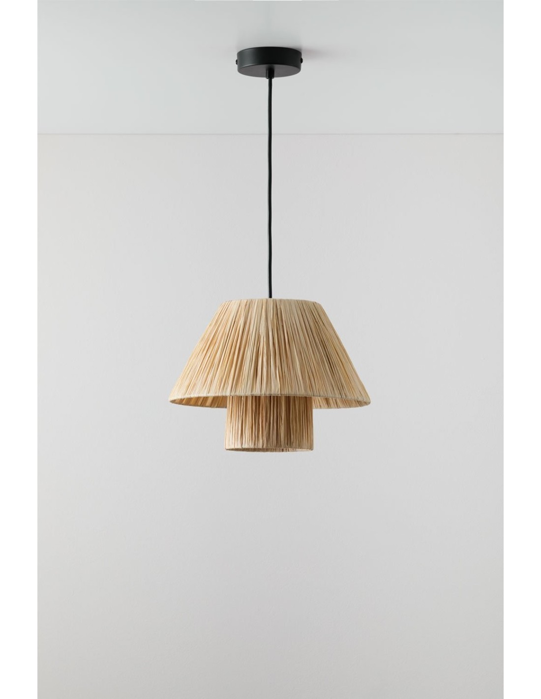 Description Plafonnier en raphia Aruel Design La Lampe de Plafond en Raphia Aruel Design offre un design contemporain qui allie fonctionnalité et style novateur. L'abat-jour, fabriqué en raphia, fournit une texture attrayante et une finition naturelle qui apporte de la chaleur à tout espace. Celui-ci est complété par une structure interne robuste en acier, assurant durabilité et stabilité. Le câble en PVC noir contraste subtilement avec la teinte claire du raphia, complétant l'esthétique moderne de la lampe. Elle est conçue pour un usage intérieur, idéale pour éclairer depuis le salon jusqu'à la chambre à coucher, avec la capacité de s'intégrer parfaitement dans divers styles décoratifs. Esthétiquement, Aruel Design se distingue par son design qui fusionne le traditionnel avec le moderne, en faisant une pièce centrale frappante et fonctionnelle dans toute décoration intérieure. Elle nécessite une ampoule avec douille E-27. Ampoule non incluse. Pour son entretien correct, nous conseillons de la nettoyer avec une chamoisine douce légèrement humide, en évitant l'utilisation de produits chimiques. Dans certains cas, les images, les dimensions et les couleurs, ainsi que les noms, sont orientatifs. Tout ce que vous voyez sur l'écran peut être altéré par différents facteurs, entre autres, la configuration de votre écran, la lumière ambiante, l'angle de vision, etc. Si le client désire en savoir plus, il devra contacter notre service client car les retours produits dû à ce motif, seront à la charge du client.