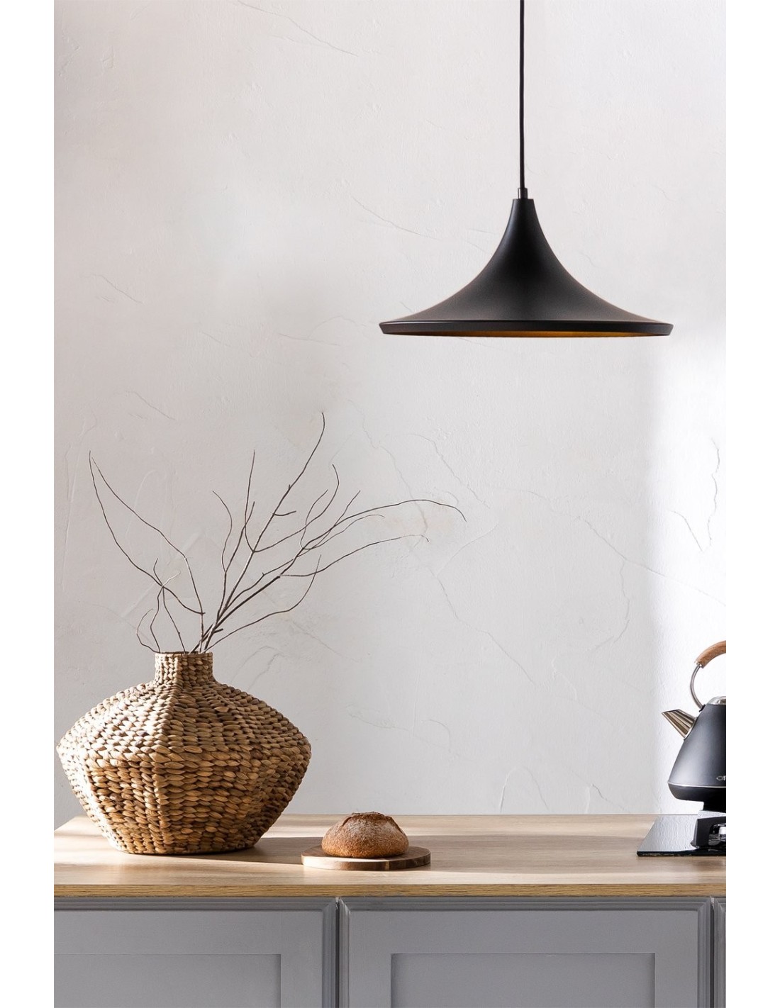 Éclairer vos pièces avec style et élégance n'a jamais été aussi facile avec notre Plafonnier Krhas. Un article qui allie design et fonctionnalité avec lequel vous créerez un environnement de caractère et de distinction. Son écran est en aluminium de haute qualité avec une finition mate et il possède une hotte intérieure dorée de style industriel. Sans aucun doute, cette lampe offre un air moderne et sophistiqué, idéale pour le salon, la salle à manger, la cuisine et le bureau. Nous vous proposons de l'accompagner d'autres lampes combinant différents modèles et tailles, créez votre propre composition aussi personnelle et unique que votre style.