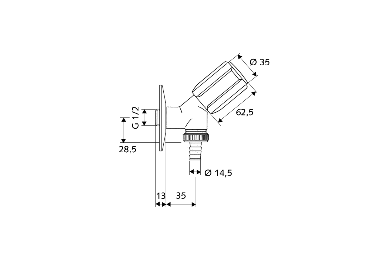 - Sortie: Raccord à visser pour tuyau, Ø 14,5 mm (DN 20 G 3/4 M)