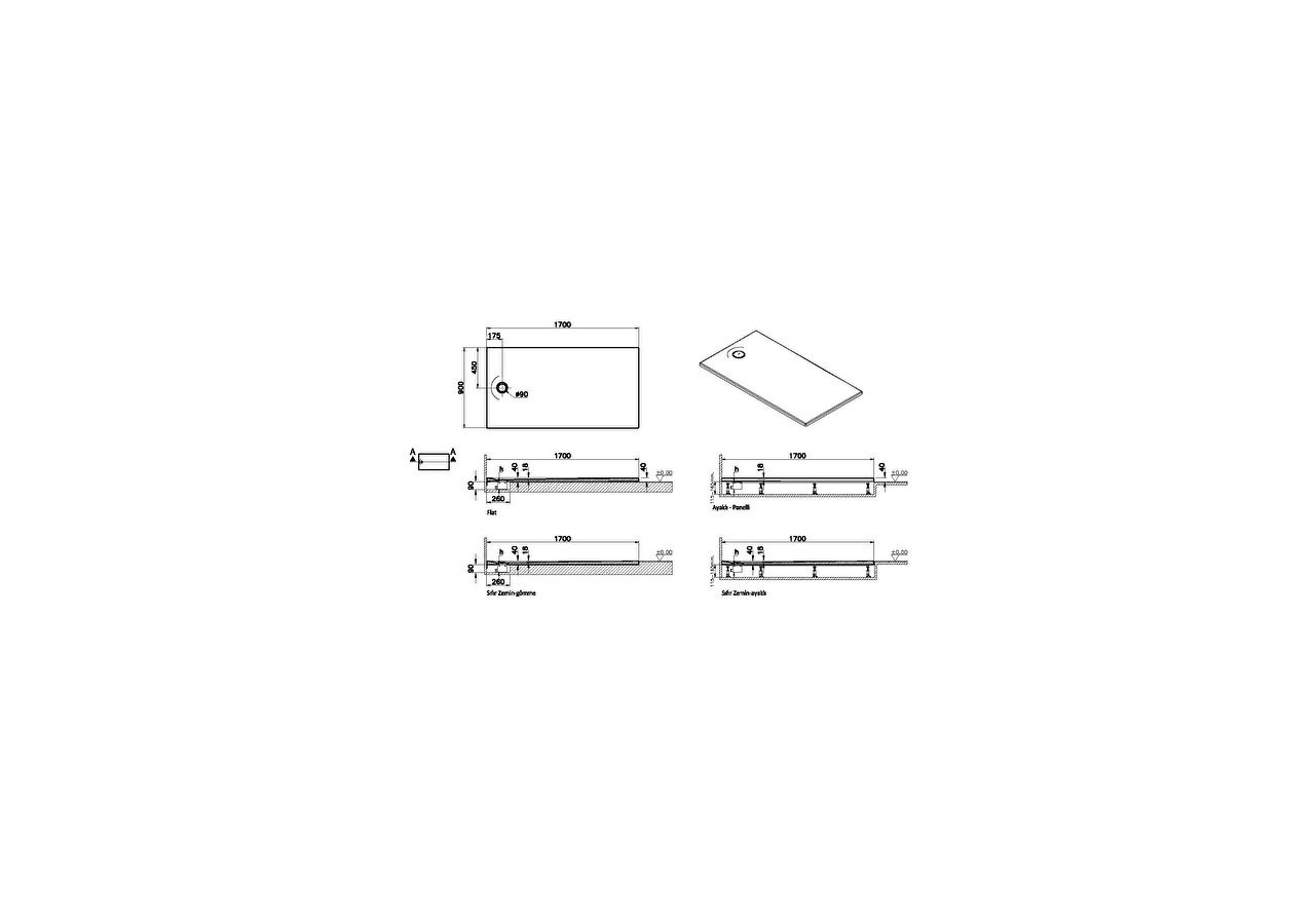 - Encastré dans le Sol : Le receveur doit être encastré dans le sol, créant une surface plane avec une pente suffisante pour l'évacuation de l'eau vers la bonde.