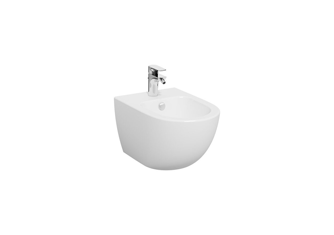 Bidet suspendu, 1 trou central pour robinet avec trop-plein, avec fixation cachée (V-Fit 2.0), sans trous latéraux
