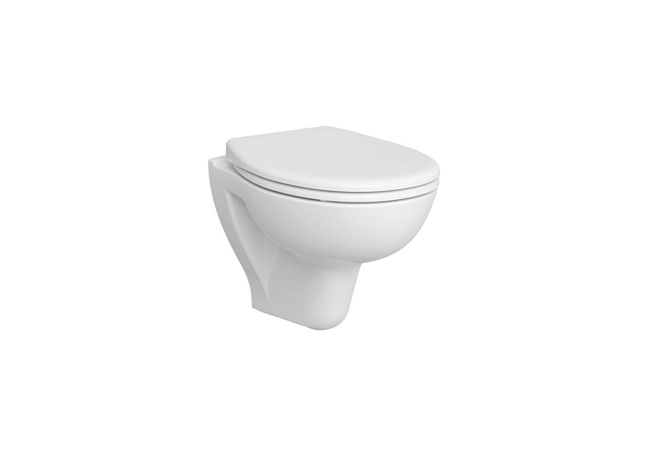 S20 Pack WC susp. compact sans bride VitrA Flush 2.0, sans chasse jante, 40 x 48,5 cm, fixation latéral, abattant Duroplast, sans fermeture douce, capacité de chasse d‘eau 3/6 litres, couleur: blanc, compatible avec abattants # 84-003-01x