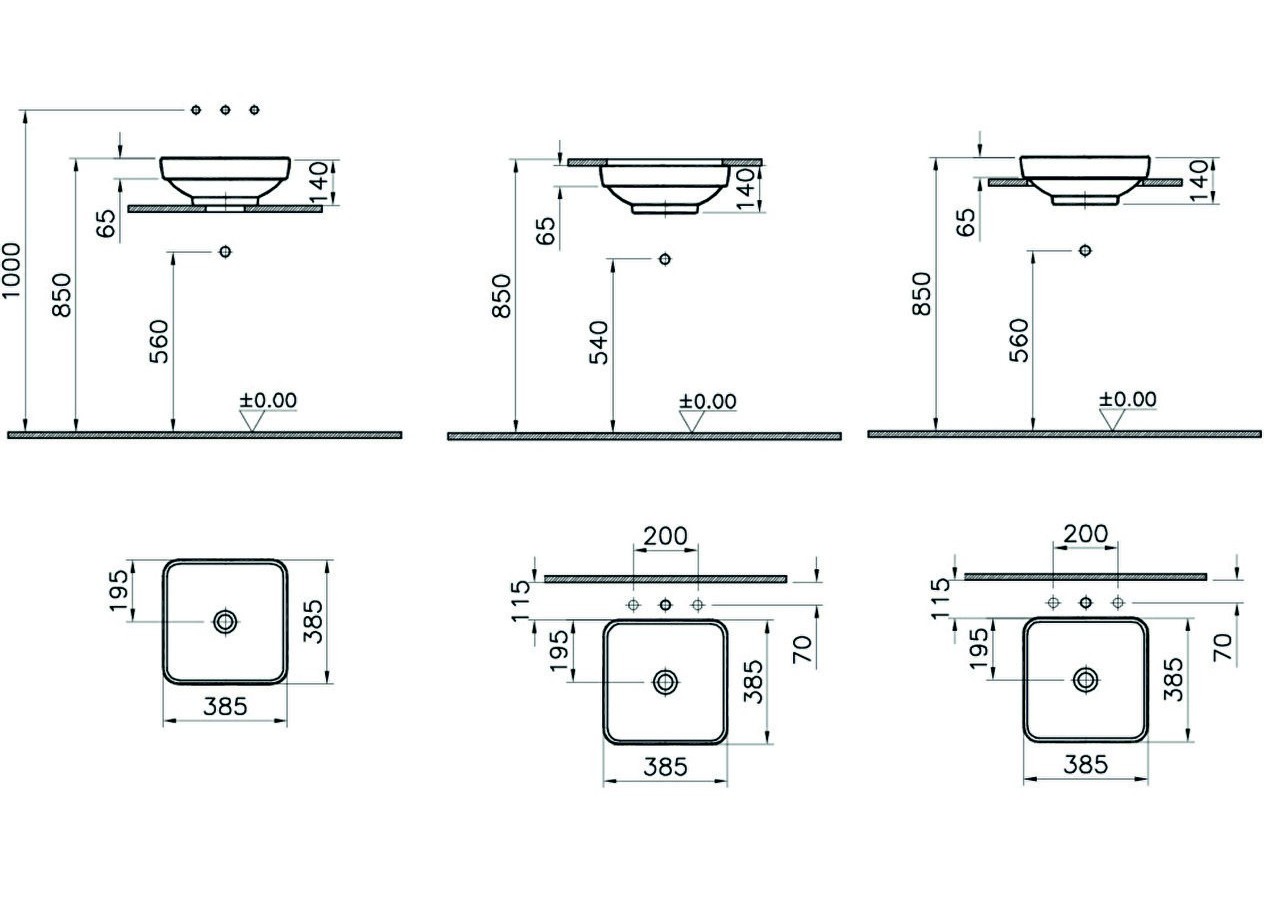 Water Jewels vasque à poser, encastrer, à encastrer par dessous, 38,5 x 38,5 cm, sans trou de robinet, sans trop-plein, Blanc