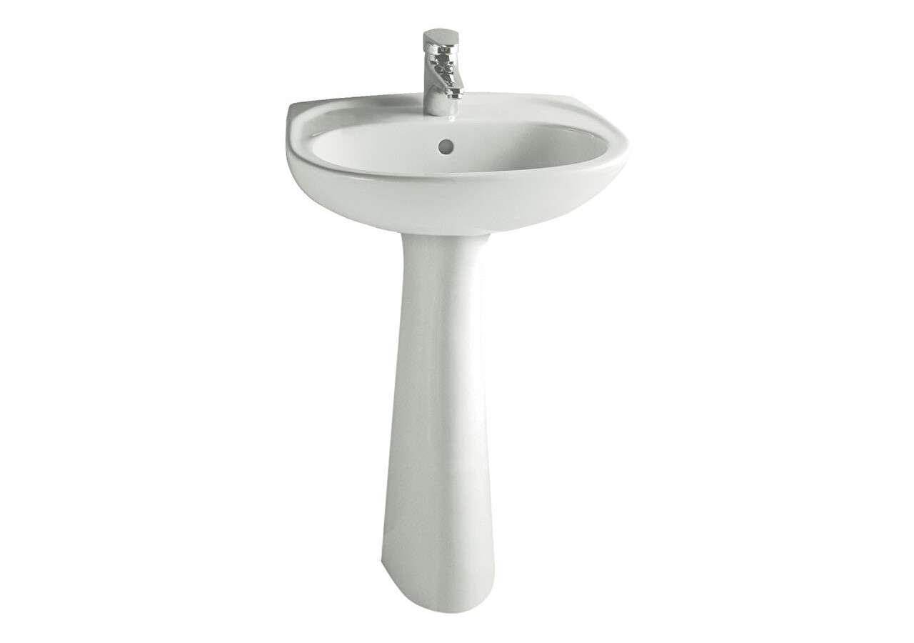 Normus lavabo 55 cm, 1 trou central pour robinet, avec trop-plein, option possible sans trop plein sur demande spécifique.