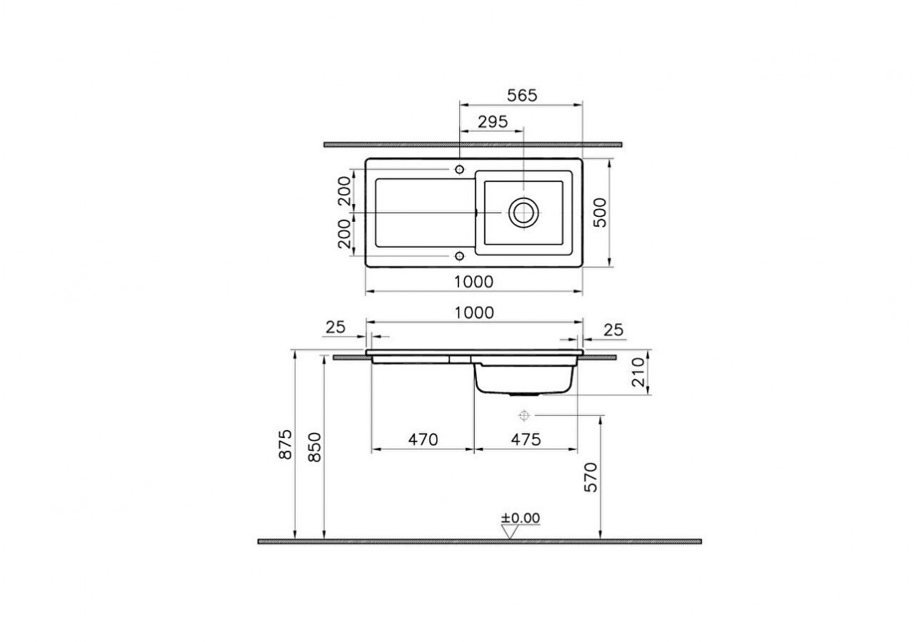Arkitekt evier cuisine encastré,100 cm, trous pour robinet avant et arrière persés, sans trop-plein, y compris kit de montage, sans système d‘écoulement, noir mat
