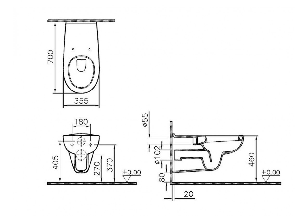 Conforma WC suspendu 70 cm PMR, accessibilité aux personnes à mobilité réduite, adapté pour chaise roulante, capacité de chasse d‘eau 3/6 litres, avec tubulure rallongée. Montage surélevé requis pour l‘obtention d‘une hauteur de siège de 480 mm, selon DIN 1385-6, DIN-EN 38, DIN 18040, DIN-EN 997. Compatible avec abattant # 84-003xxxx, # 115-003-006, # 115-003-506.