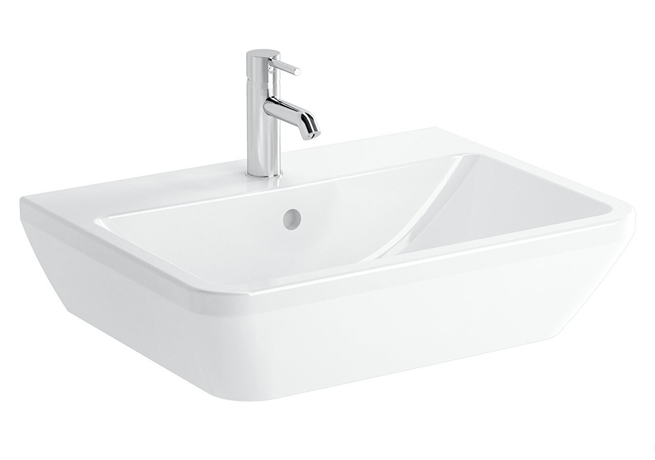 Integra lavabo carré, 65 cm, avec trou de robinet, avec trop-plein