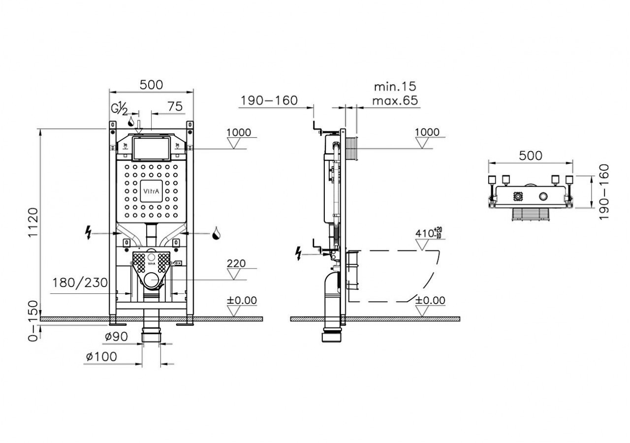 Compatibilité Universelle : Les bâti supports VitrA sont compatibles avec toutes les cuvettes WC, panneaux de commande VitrA et technologies intelligentes.