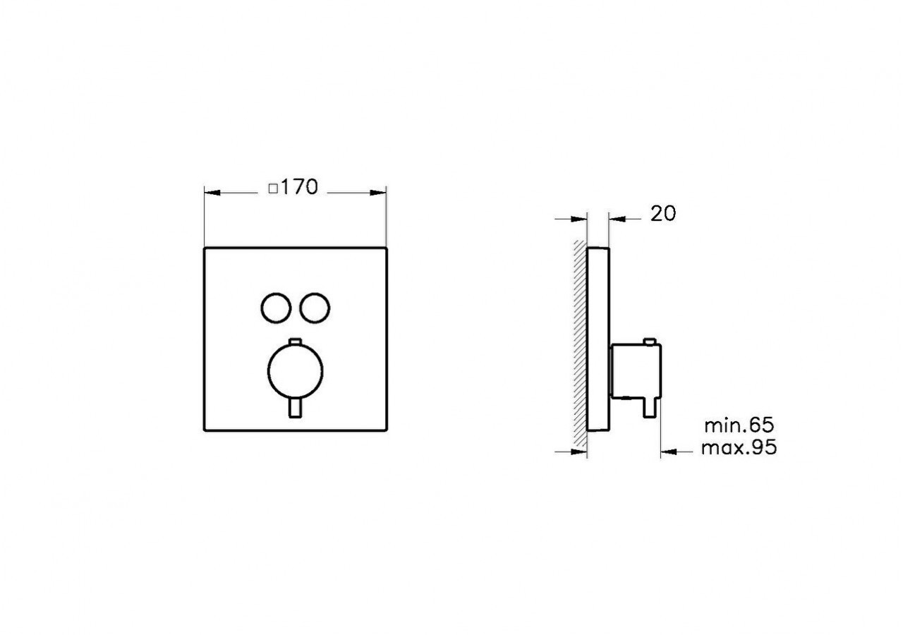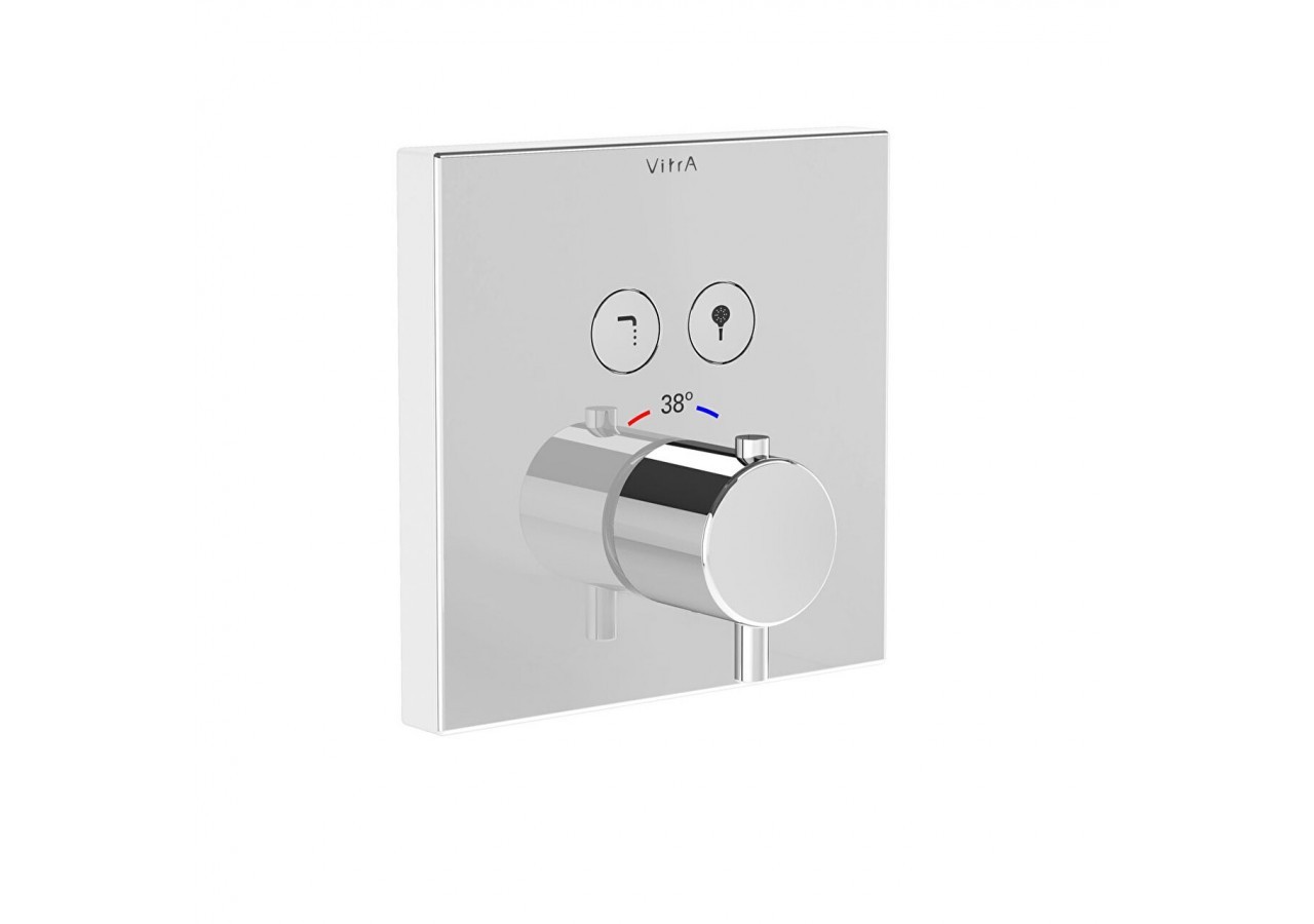 Mitigeur Aquacontrol thermostatique bain/douche encastré - partie visible, avec boutons de sélection pour douchette et de pommede douche, chromé
