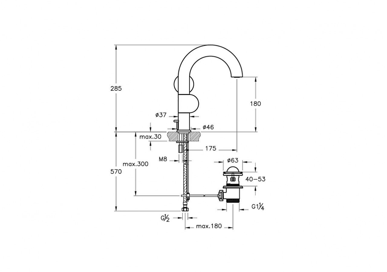 Liquid Mitigeur lavabo côté droit, Noir brillant, avec pop-up, Noir brillant