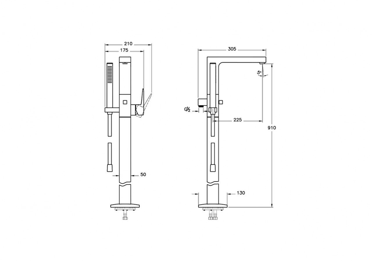 Mitigeur de bain au sol, avec douchette, 192 x 317 x 1 120 mm - 9,45 kg - Chromé