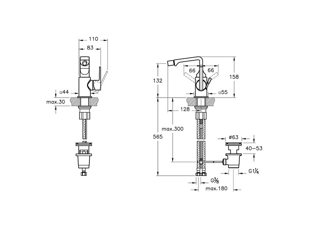 Mitigeur de bidet, avec tirette_Noir brillant