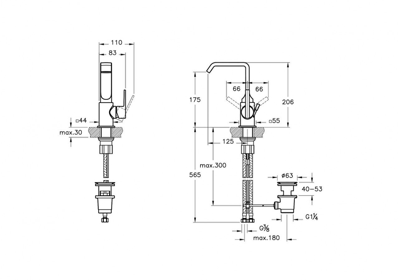 Mitigeur de lavabo, avec tirette_Noir brillant