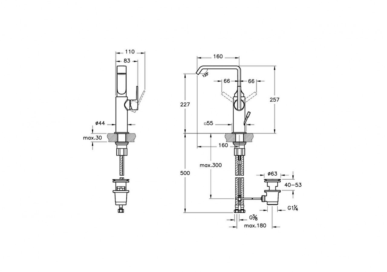 Mitigeur de lavabo XL, avec tirette_Noir brillant