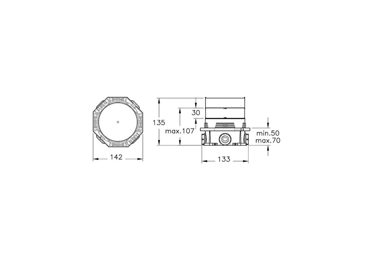 Boîte à encastrer - Kit de prémontage pour kit de montage final - 2 raccords G 1/2” (froid/chaud) -Écoulement G 1/2" pour douche - Écoulement G 1/2" pour baignoire - Emplacement pour dispositifd'inversion baignoire/doucheCompatible avec kit de montage final (pour V-Box) pour mitigeur bain/douche à encastreret inverseur à encastrer Suit L/U, Origin, Root