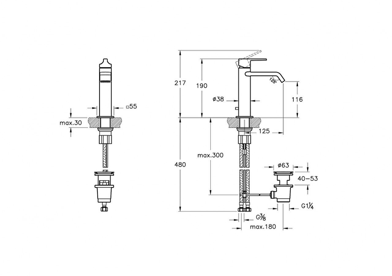 Mitigeur de lavabo -Poignée sur le dessus, avec tirette_Noir brillant