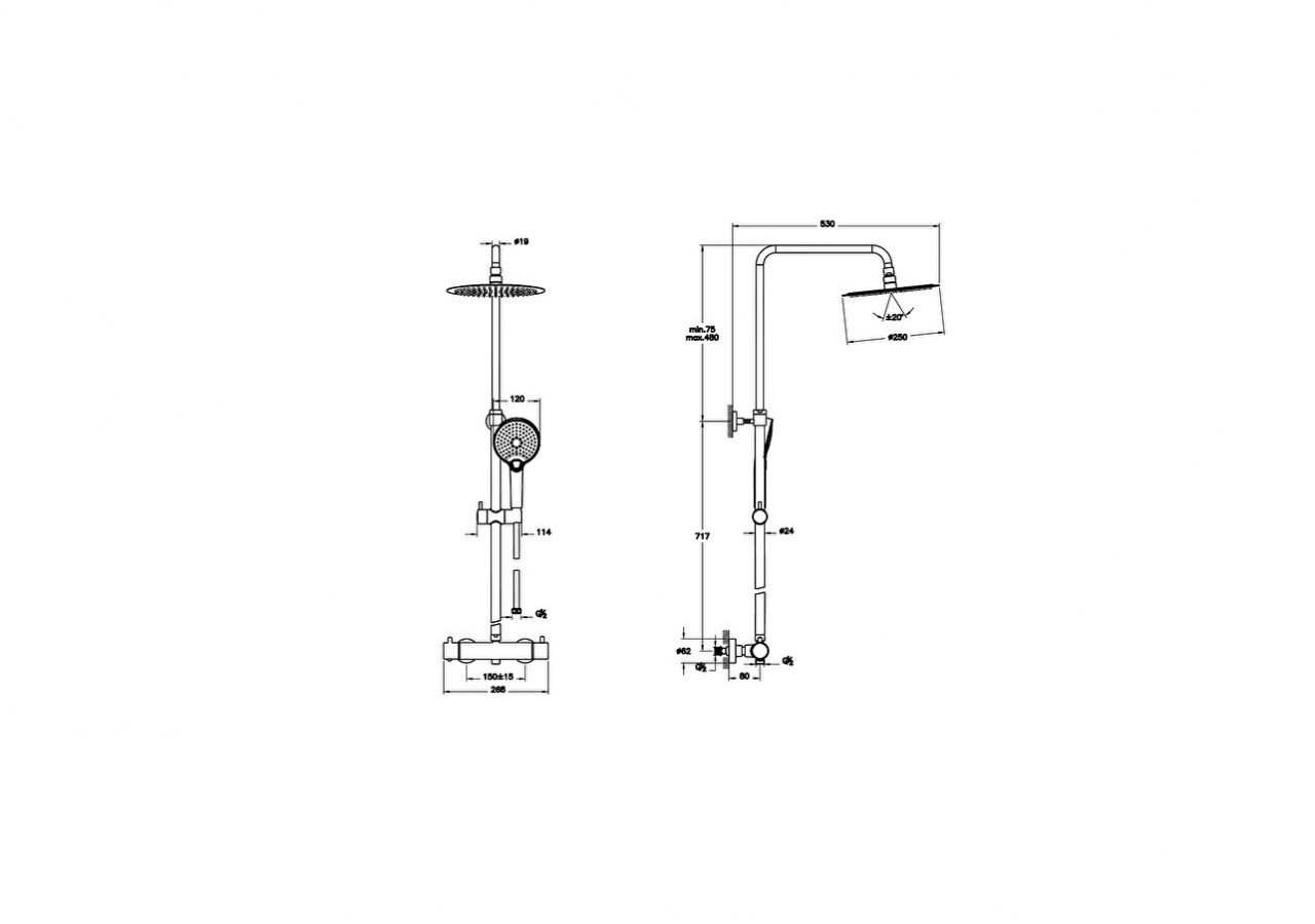 Aquaheat Bliss 250 pomme de tête pluie ronde en plastique D250 mm, débit 12l/min, colonne en acier inox chromé, flex.de douche gaine lisse 1750 mm (anti-torsion) douchette avec 3 jets Aquaspray, Aquamassage, Aquasoft, Ø120mm, débit 9l/min