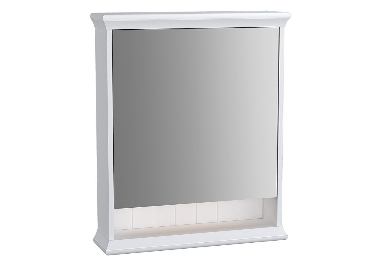 Valarte armoire de toilette, porte, fermeture douce, étagère en verre, caisson MDF et film polymère, mural, étagère en dessous, éclairage d'ambiance (12 w, 2.700K, 270 Lumen, IP44), A et et, interrupteur, 65 cm, ivoire mat, gauche