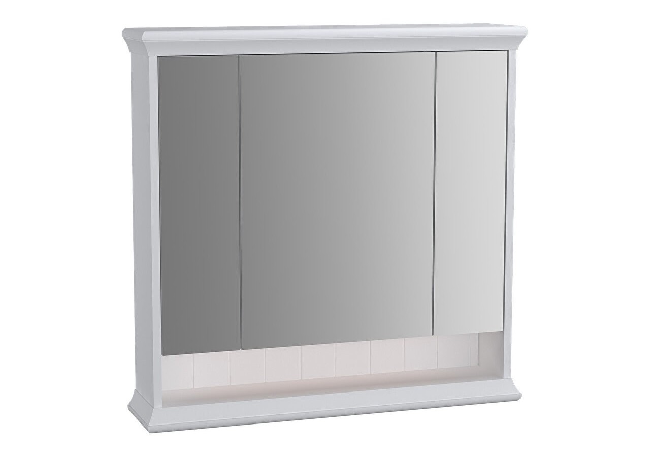 Valarte armoire de toilette, avec portes, fermeture douce, étagères en verre, caisson MDF et film polymère, montage mural, étagère en dessous, avec éclairage d'ambiance (12 w, 2.700K, 416 Lumen, IP44), A et et, interrupteur, 80 cm, blanc mat