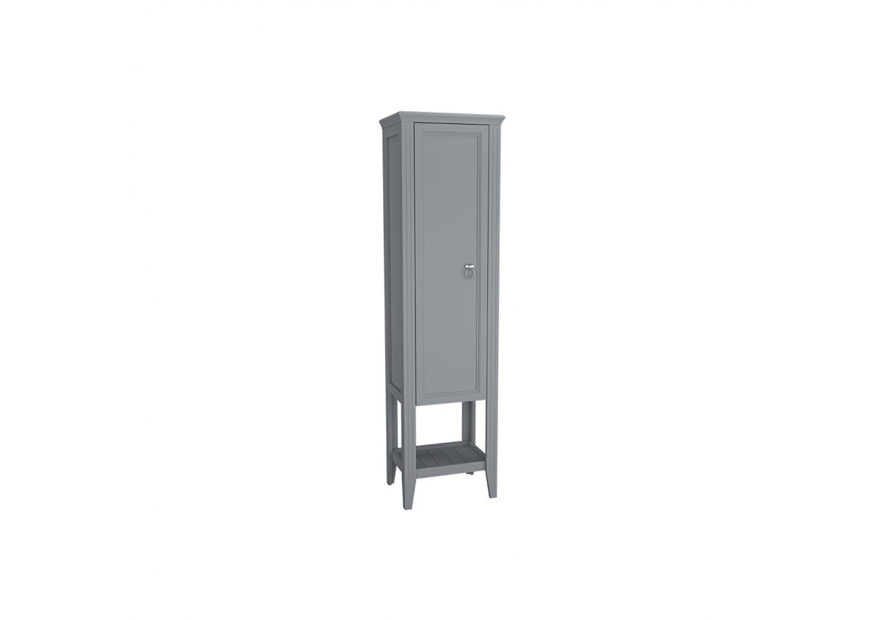 Valarte armoire haute, avec porte, fermeture douce, étagères en verre, poignées à passe doigt chromées, caisson MDF et film polymère, montage mural, 55 cm, gris mat, gauche