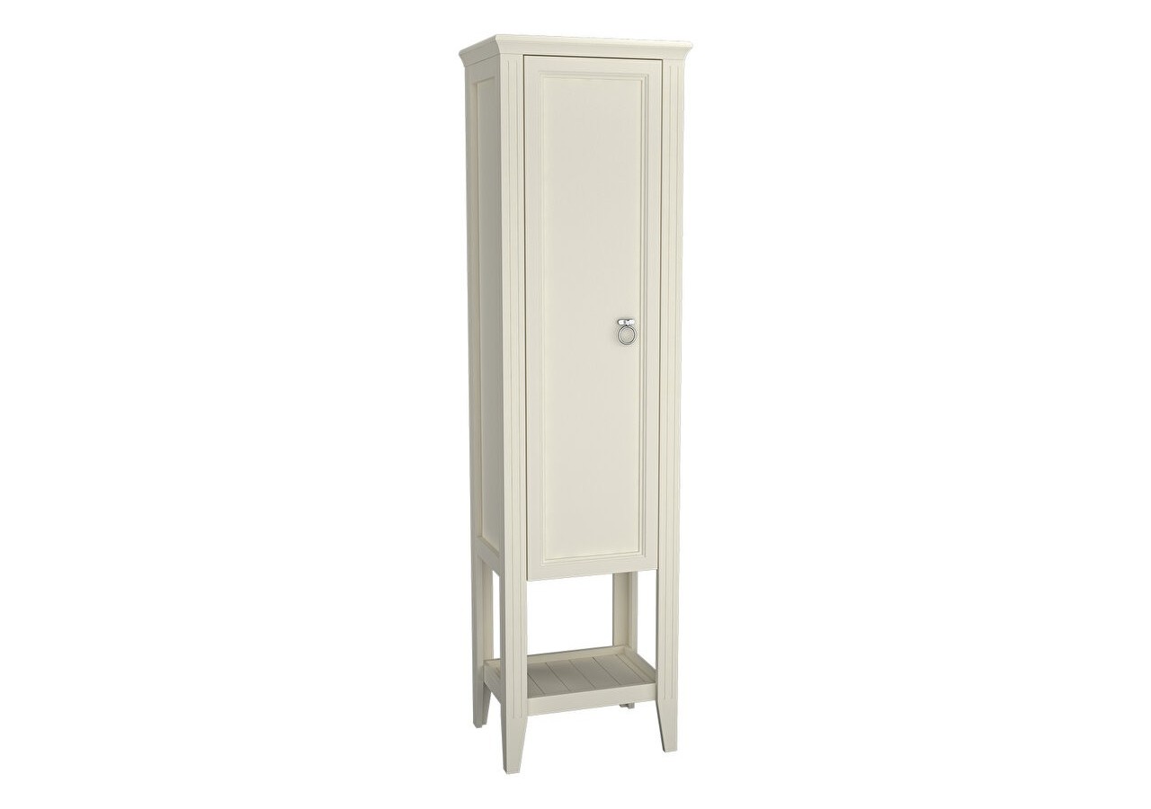 Valarte armoire haute, avec porte, fermeture douce, étagères en verre, poignées à passe doigt chromées, caisson MDF et film polymère, montage mural, 55 cm, ivoire mat, gauche