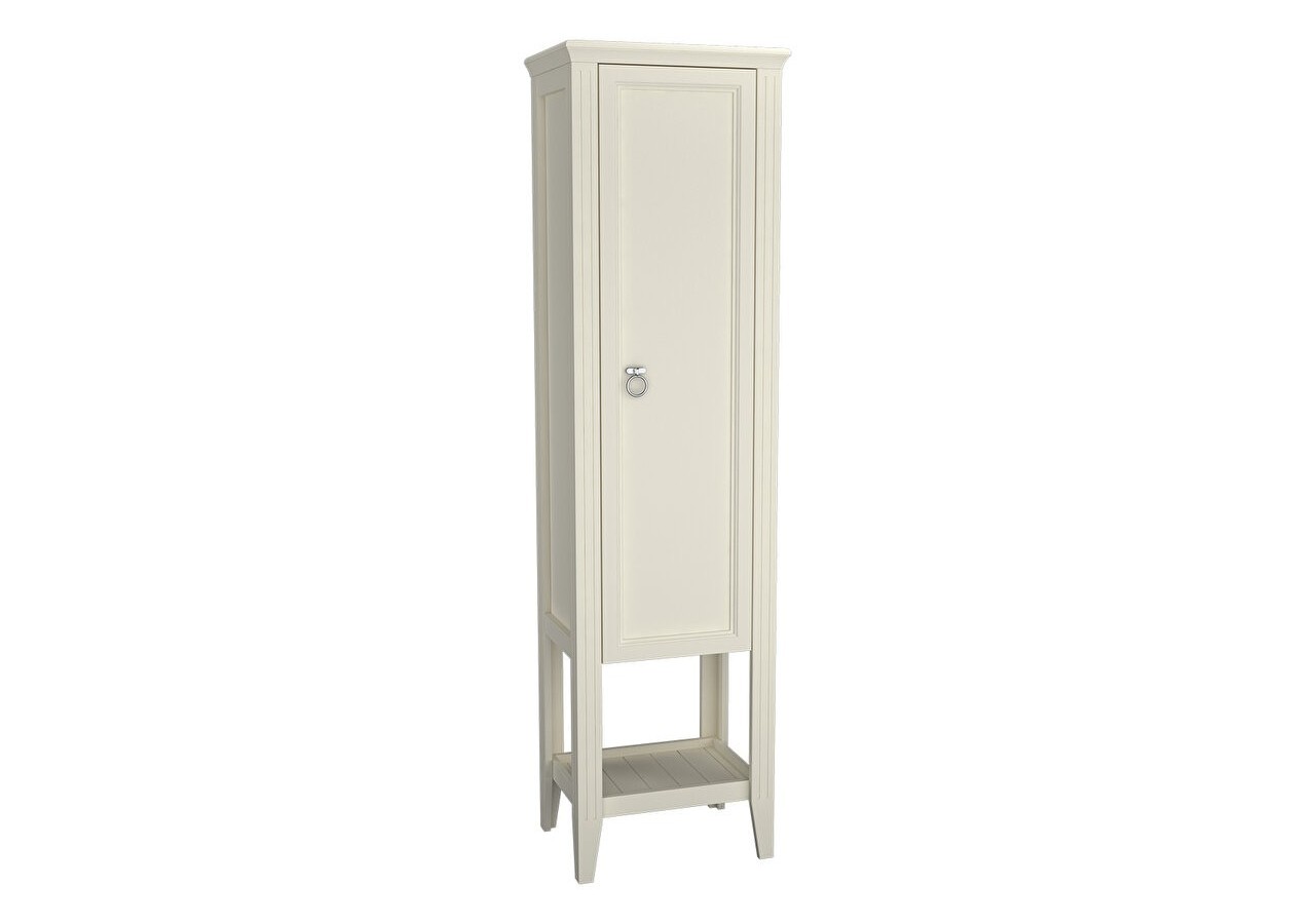Valarte armoire haute, avec porte, fermeture douce, étagères en verre, poignées à passe doigt chromées, caisson MDF et film polymère, montage mural, 55 cm, ivoire mat, droite