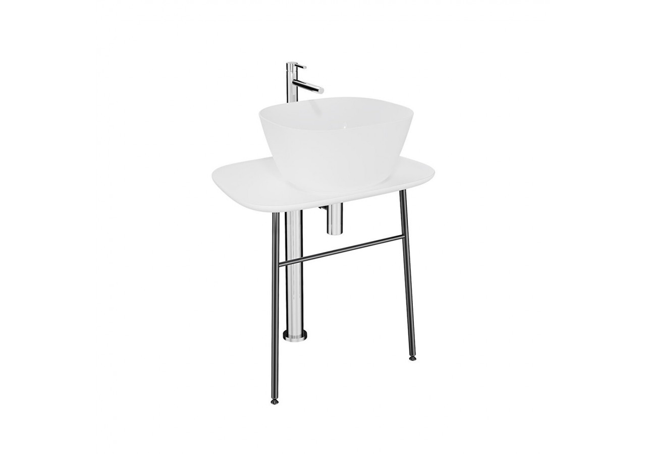 Plural console en îlot basse pour vasque,blanc,68,5cm, console en céramique,2 pieds,piètements métal noir mat,avec fixation,compatible avec vasque #7811. Livrée non-assemblée.Important : À utiliser uniquement avec Origin siphon indépendant.