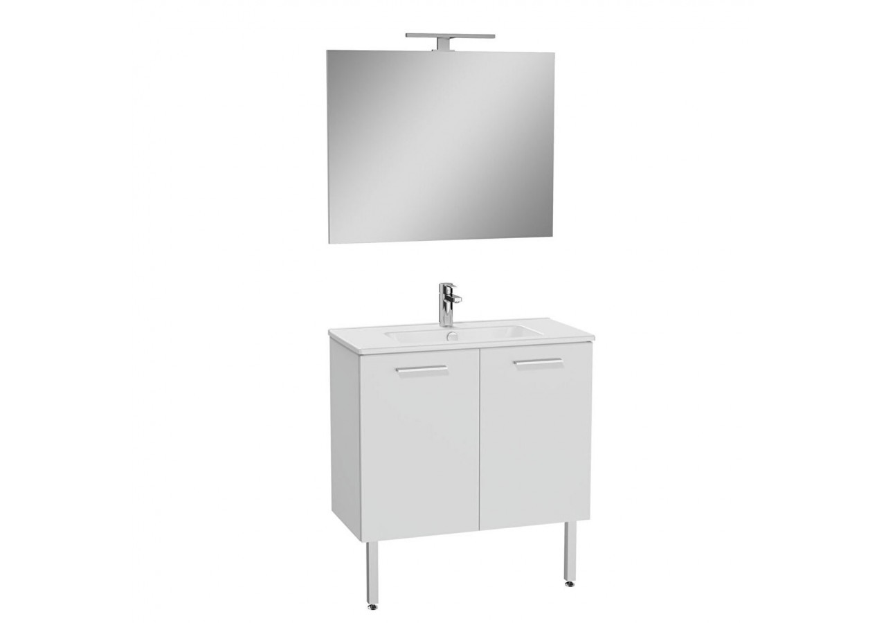 MIA set de meuble avec plan céramique, 80 cm, 2 portes, avec miroir avec éclairage LED, pieds chromés, blanc brillant