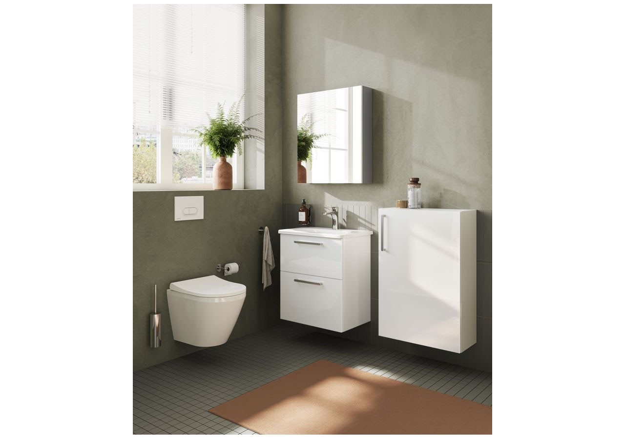 Root Meuble de lavabo, avec portes, 45 cm, compact, avec trou de robinet à droite, Blanc brillant, sans lavabo, Droit