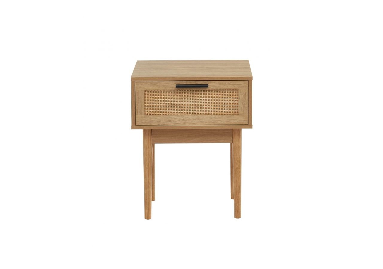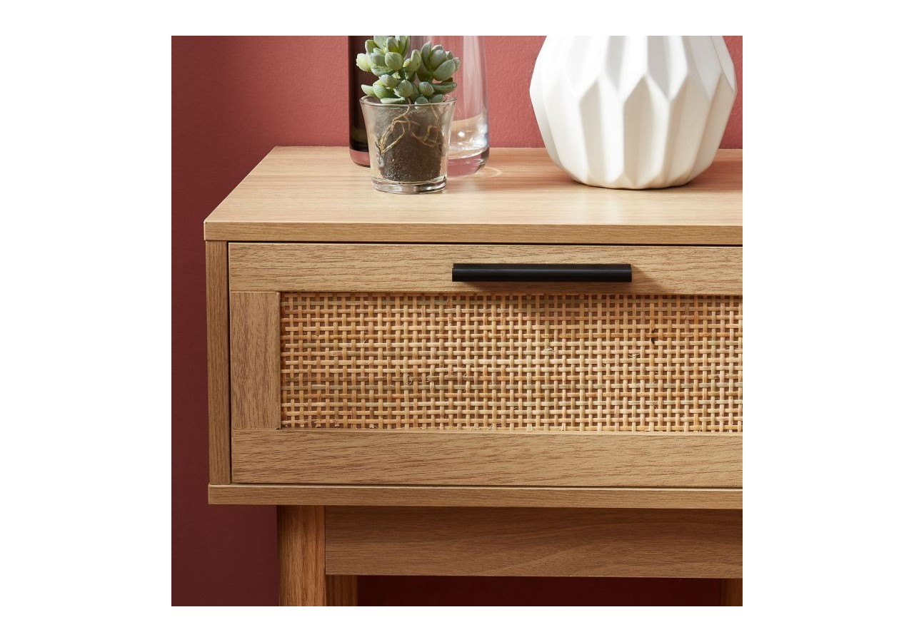 La table de chevet AMANA vogue sur la tendance du moment avec son habillage en cannage naturel. Élégante et pleine de caractère, elle amène un esprit vintage et cocooning à votre chambre.