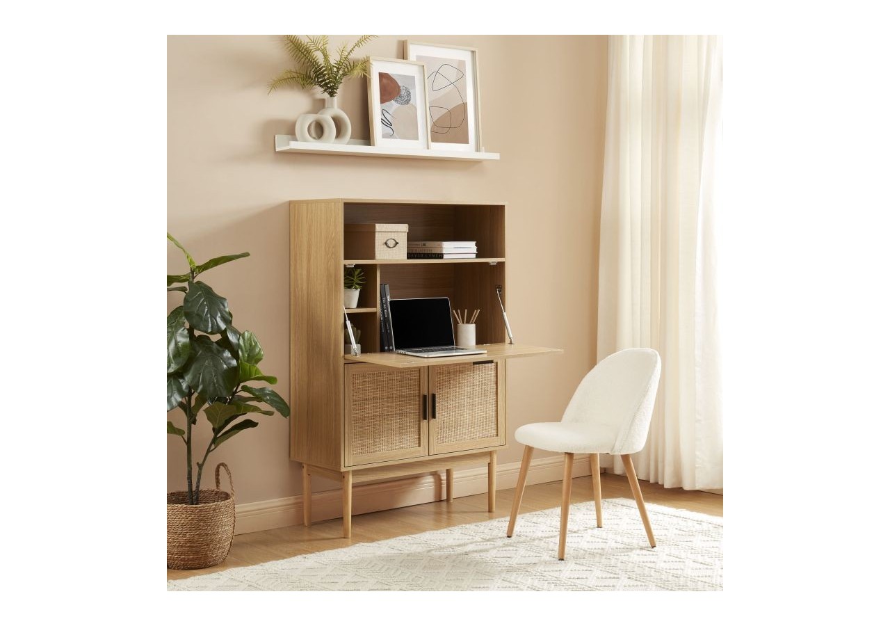 Totalement dans l'air du temps avec son habillage en cannage rotin, ce secrétaire de style rétro ira très bien dans un salon, une chambre ou encore un bureau.