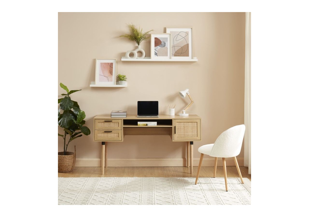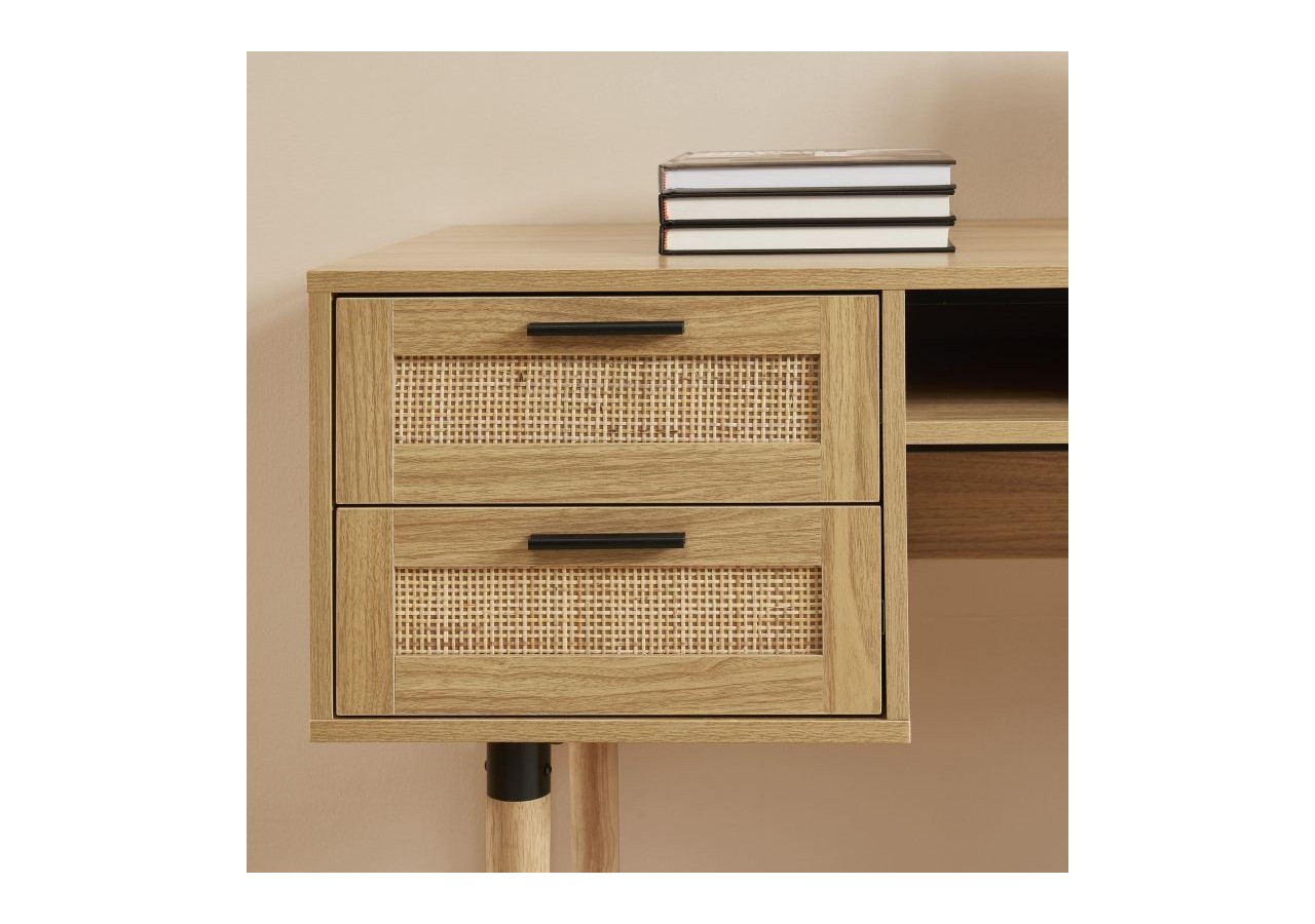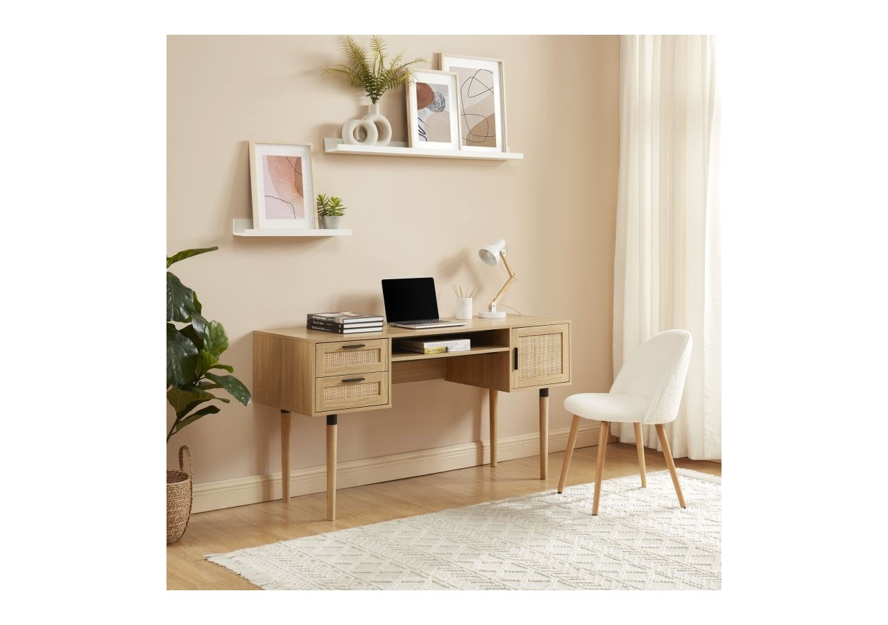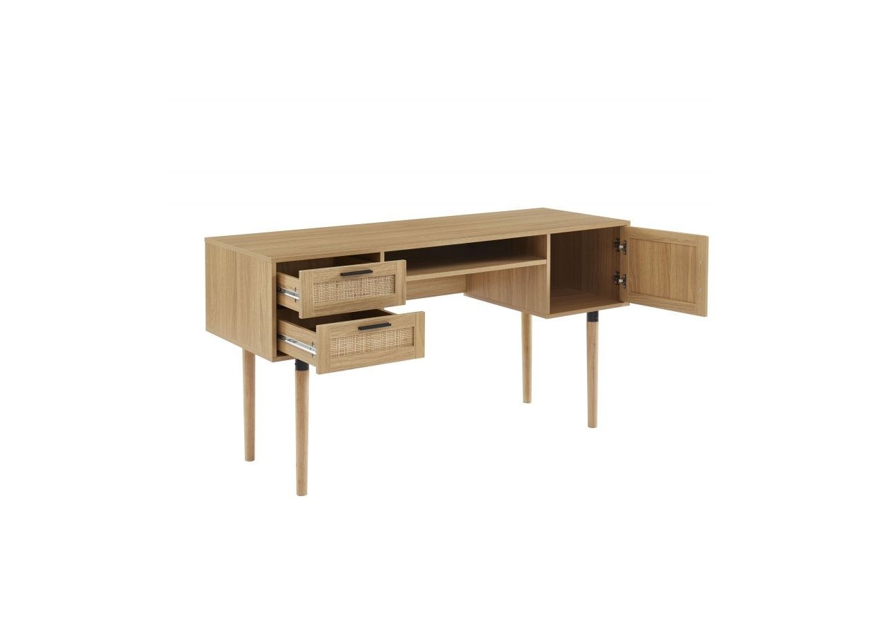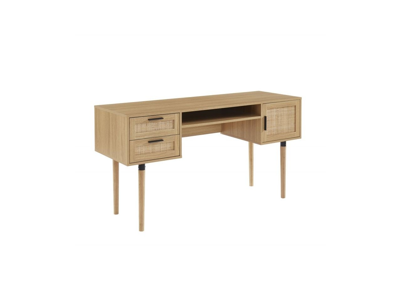 On craque littéralement pour ses finitions en cannage, lui donnant un style rétro en toute simplicité. Avec sa porte, sa niche et ses 2 tiroirs, le bureau droit AMANA vous offre de nombreux espaces de rangement où vous pourrez stocker feuilles, stylos, chargeur, etc.