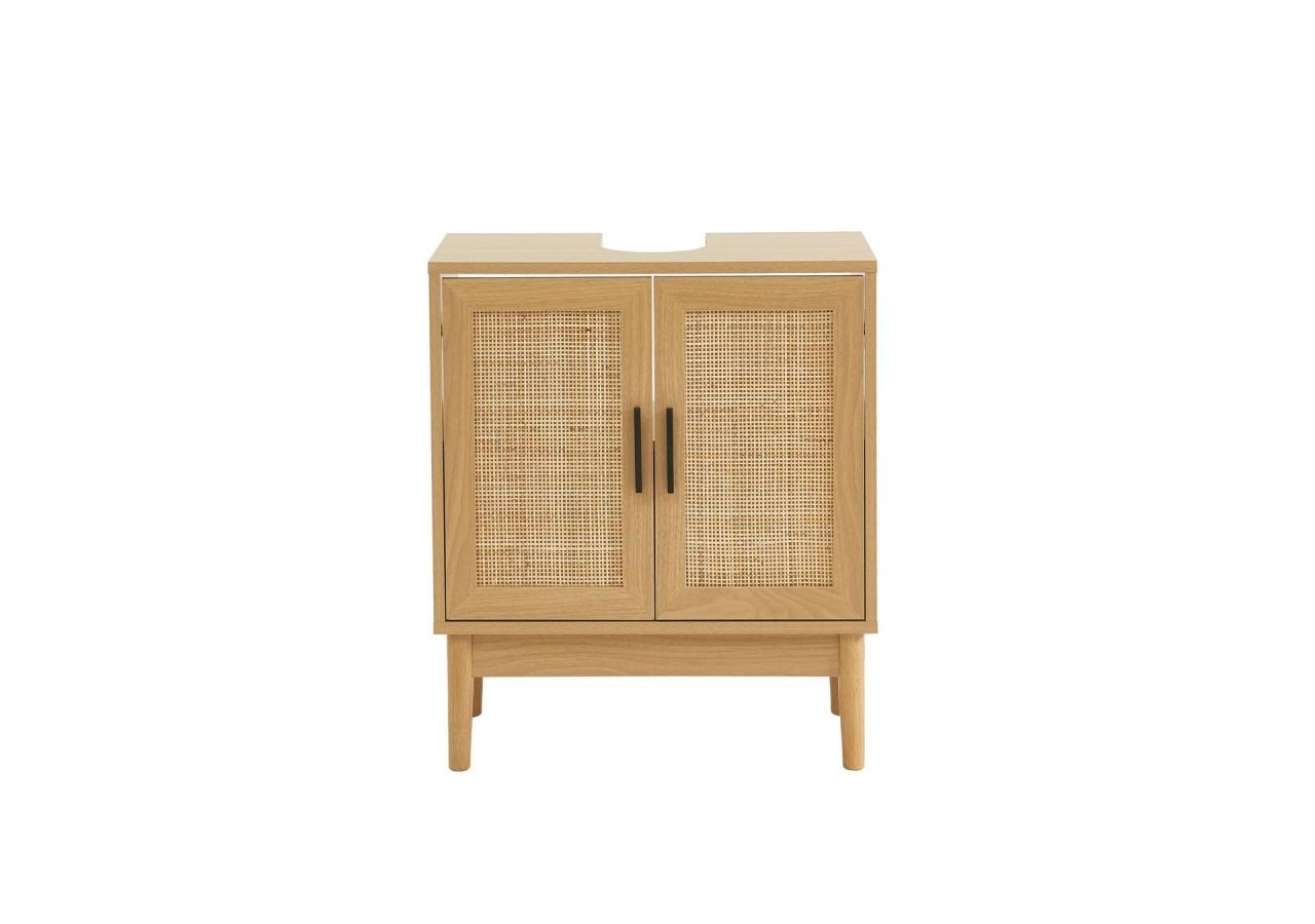 La tendance du cannage jusque dans la salle de bain ! Optez pour ce joli meuble sous-lavabo AMANA, joliment habillé de cannage en rotin.