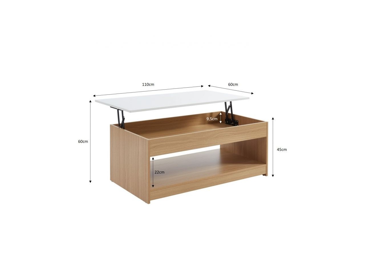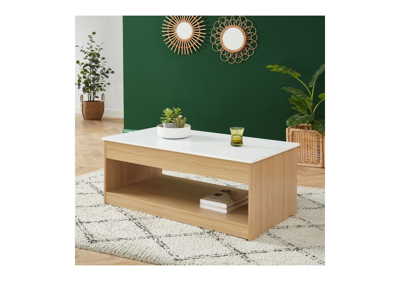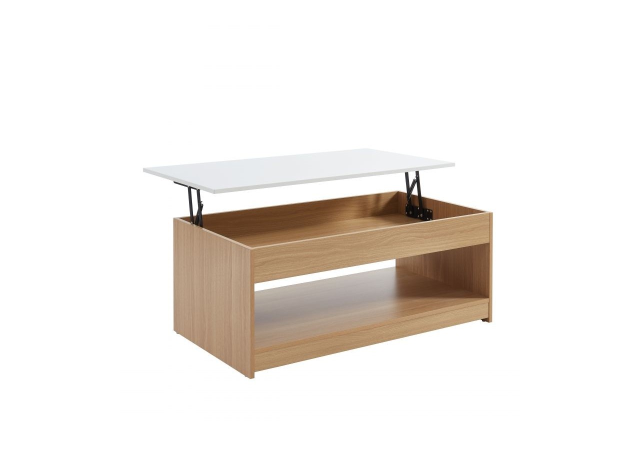 Pratique et astucieuse, la table basse AMOS est équipée d'un plateau relevable pour travailler ou déjeuner confortablement. Son petit plus : son espace de rangement dissimulé sous son plateau pour ranger vos affaires en toute discrétion.