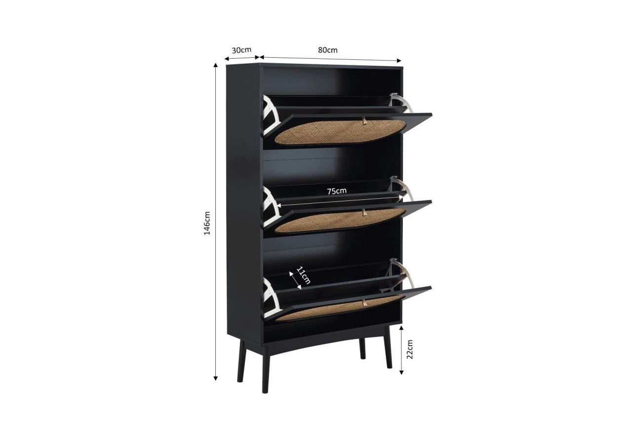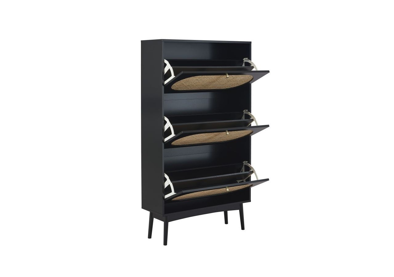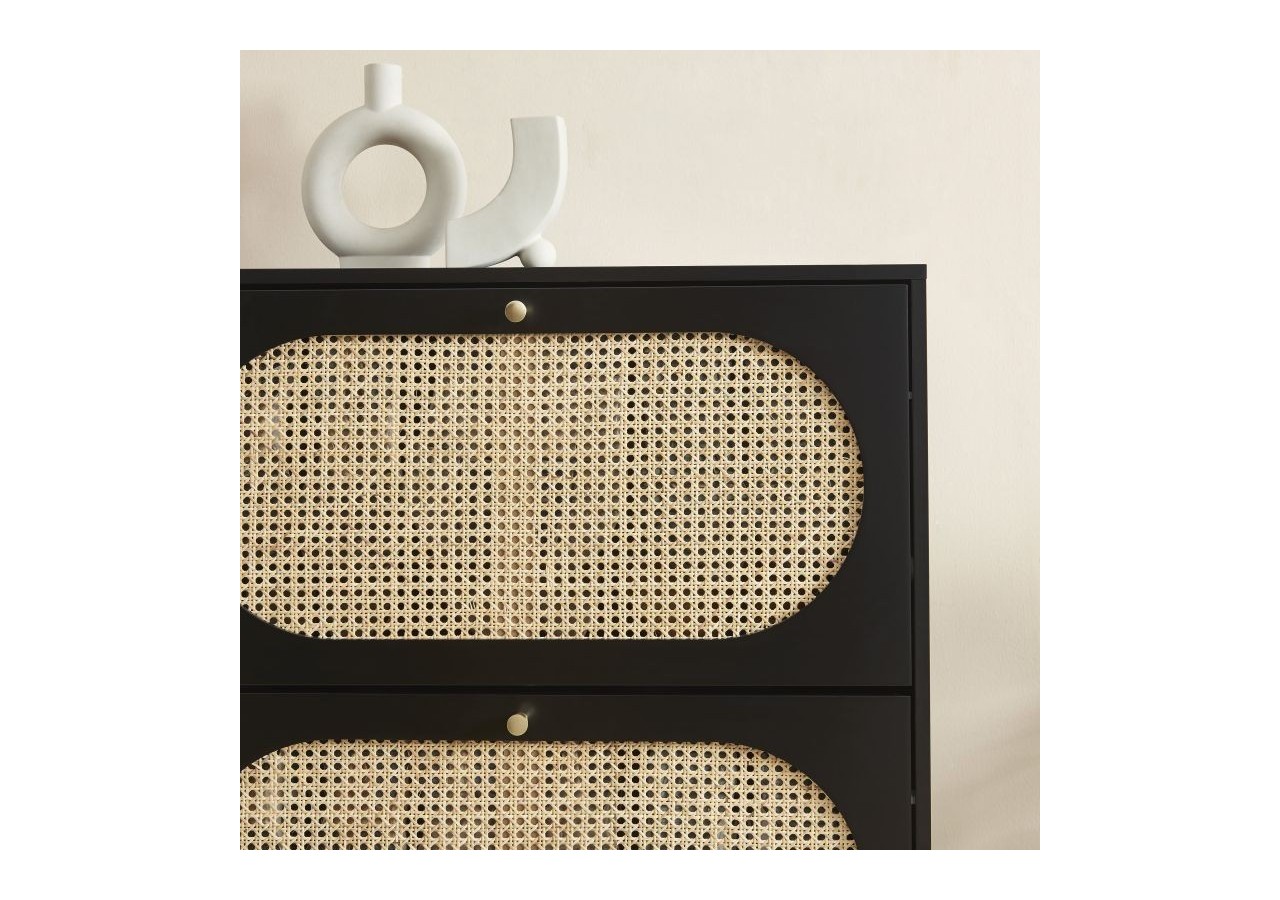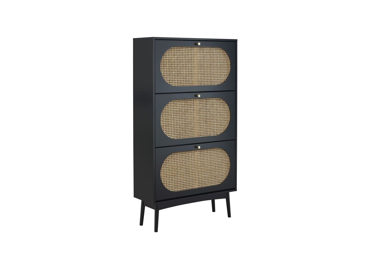 La gamme ANATOLE mise sur l'alliance du noir et du cannage. Pour une entrée bien organisée, misez sur le meuble à chaussures ANATOLE. Ce dernier vous permettra de ranger jusqu'à 18 paires de chaussures en toute facilité.