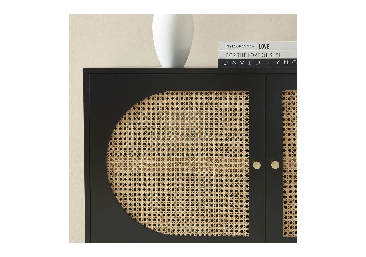 La gamme ANATOLE mise sur l'alliance du noir et du cannage. Vous êtes à la recherche d'un buffet pour optimiser les rangements de votre pièce de vie ? Optez pour le buffet ANATOLE. Ses 2 portes et ses 2 niches vous permettrons de ranger votre vaisselle très facilement. On est également fan du design de cette gamme, tout en finesse avec ses courbes arrondies, son cannage circulaire, ainsi que ses poignées en laiton doré. Ce buffet en cannage bas sera l'atout principal de votre pièce de vie !