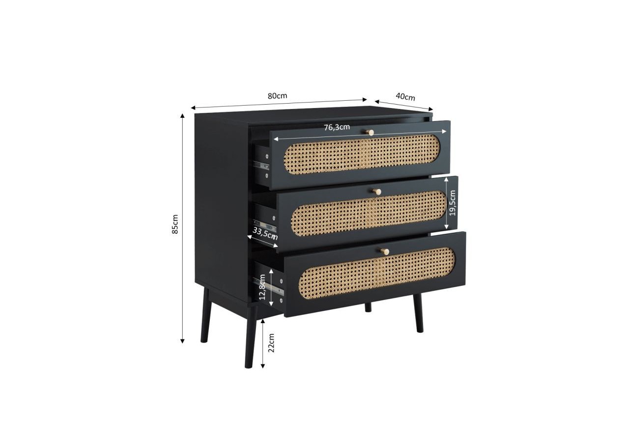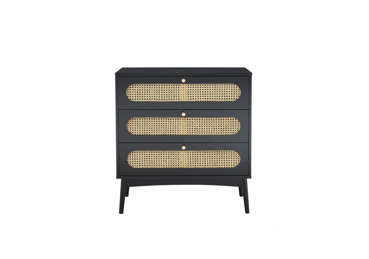 La gamme ANATOLE mise sur l'alliance du noir et du cannage.Pour une chambre bien rangée, misez sur la commode ANATOLE. Que ce soit pour une chambre adulte ou enfant, cette dernière y trouvera sa place et vous aidera à ranger vos vêtements avec praticité.