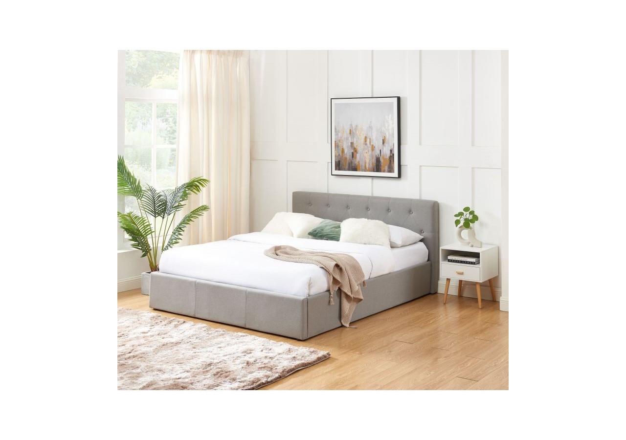 Bon à savoir : le lit coffre BAHIA en tissu gris existe en 160x200 et 180x200.