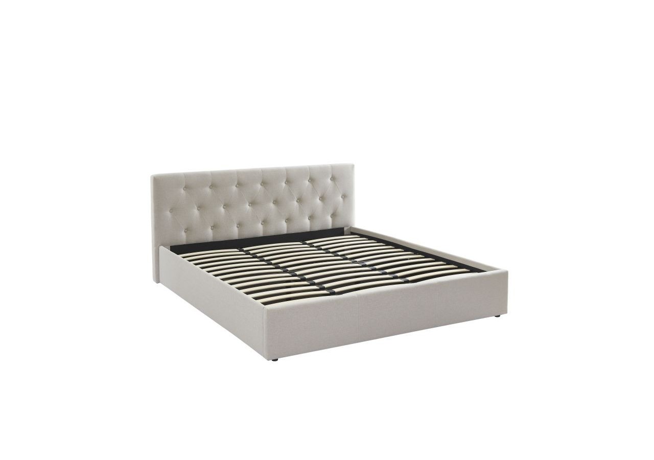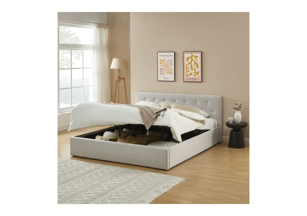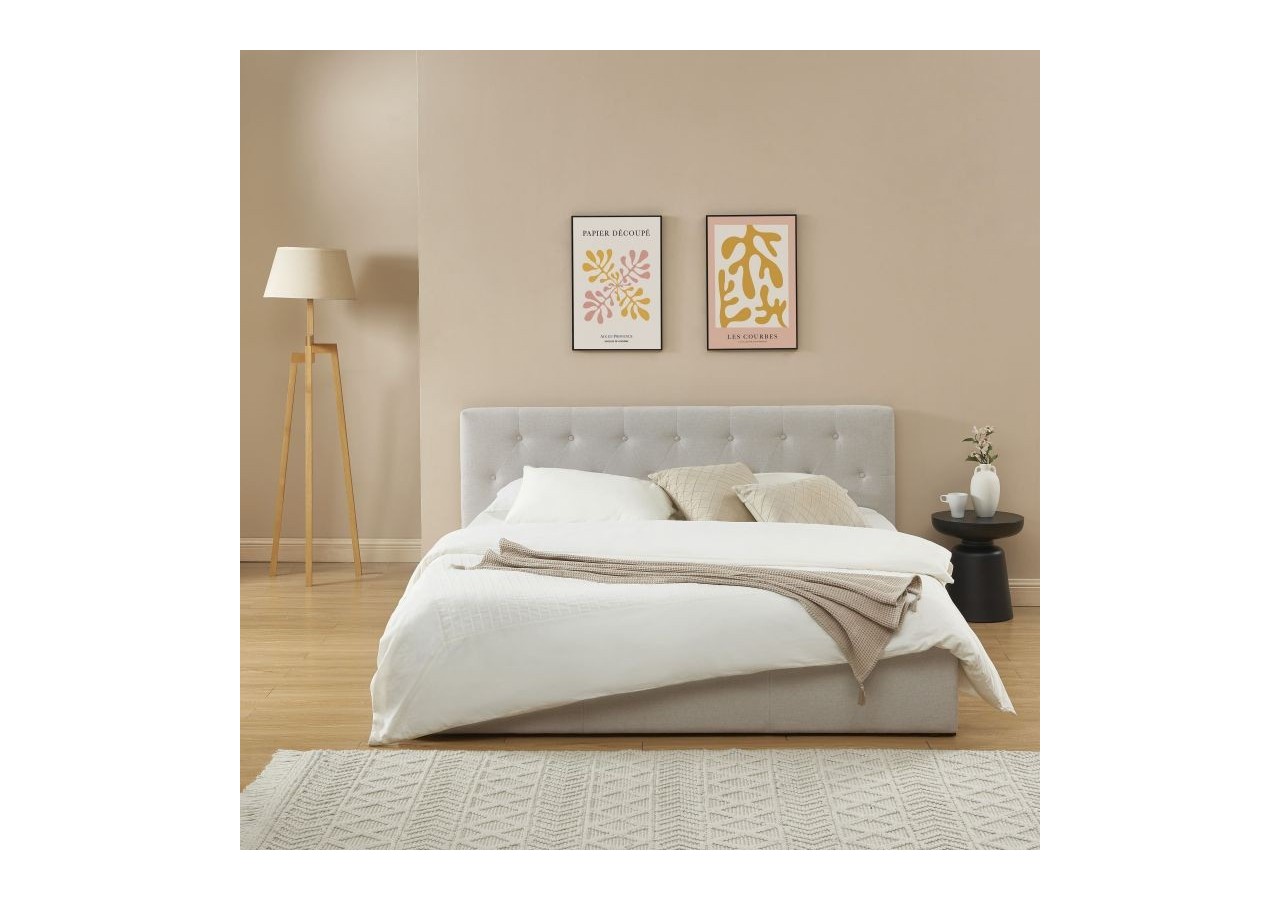 En plus de sa praticité, on aime le lit BAHIA pour son style, très naturel avec ce revêtement en tissu beige lin. On apprécie aussi cette tête de lit capitonnée, chic et moderne.
