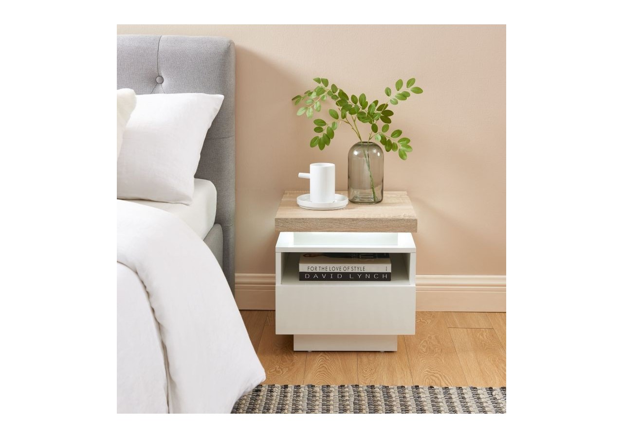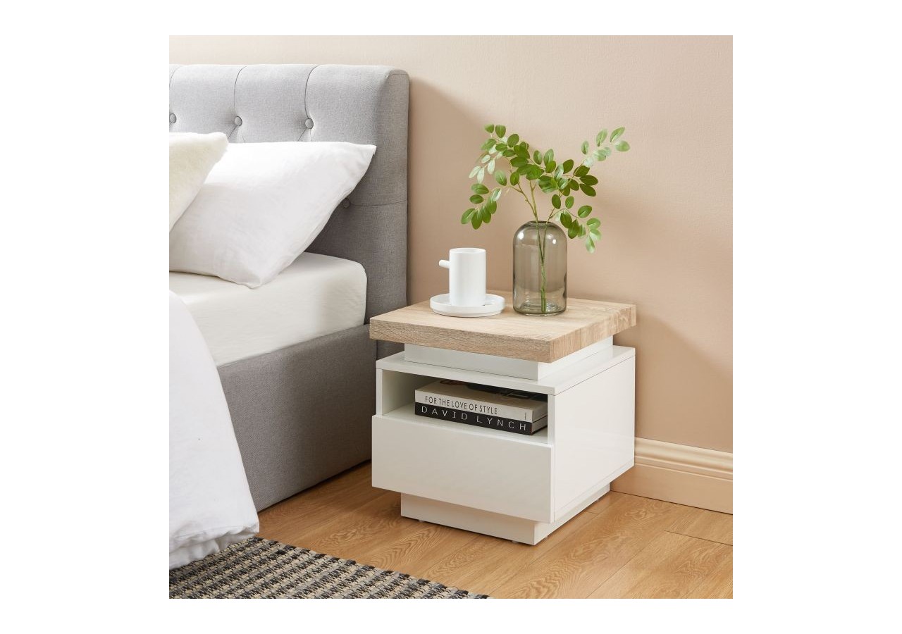De forme cubique, cette dernière se glissera facile entre le lit et le mur. On apprécie sa niche et son tiroir, vous permettant de ranger facilement vos affaires.