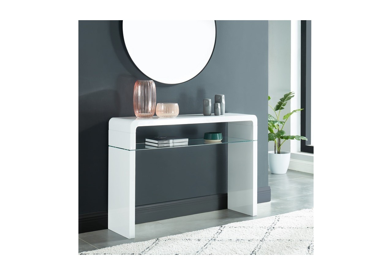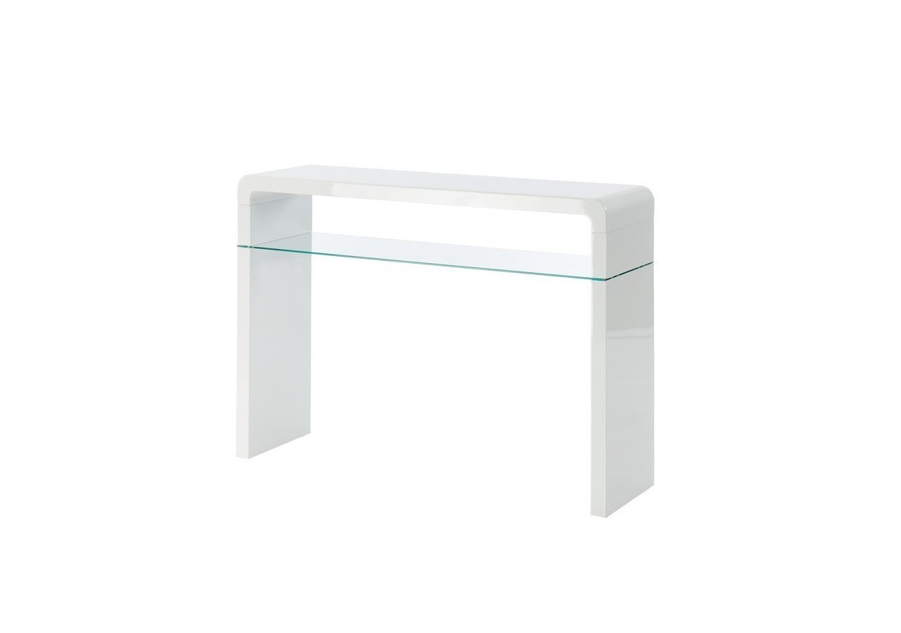 Console DARWIN - 1 étagère en verre trempé - Structure en MDF finition laqué blanc brillant - Dimensions : L105xP30xH75cm