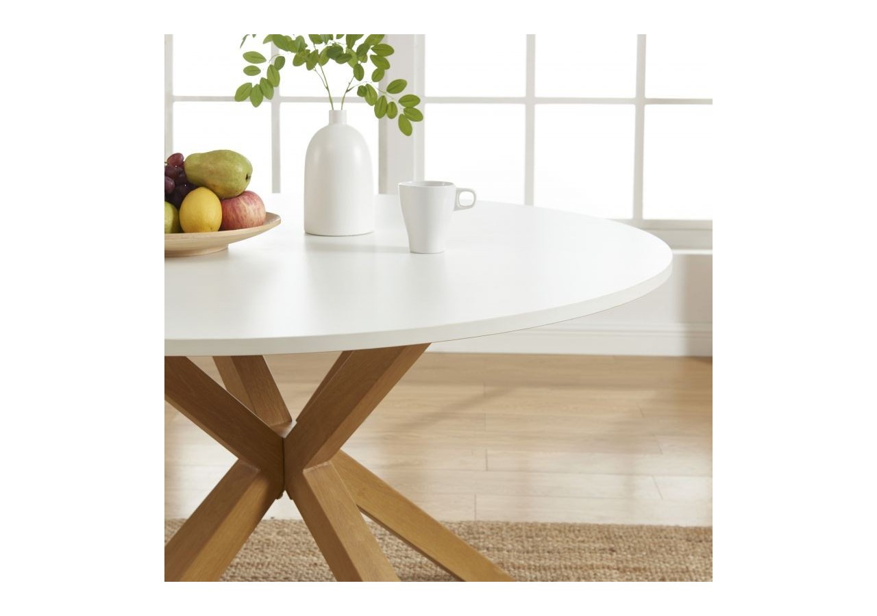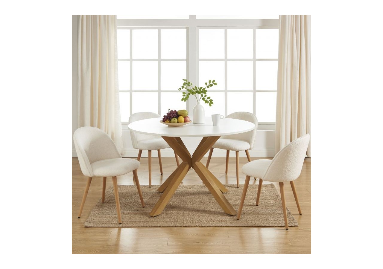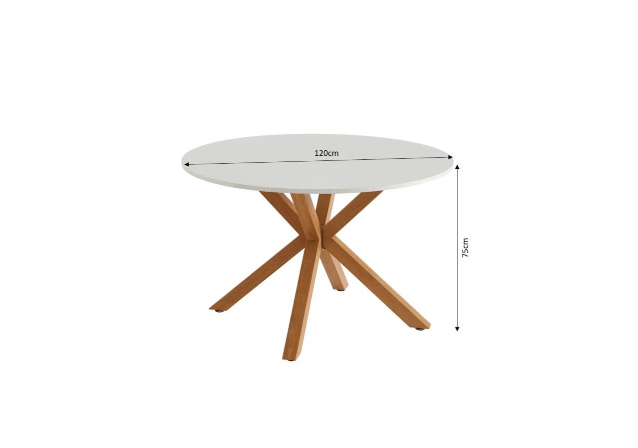 Vous êtes à la recherche d?une table à manger pour votre pièce de vie ? Optez pour l'élégance et la convivialité de notre table à manger ronde HARRY. Avec son plateau blanc de 120 cm de diamètre et ses pieds en métal effet chêne, la table HARRY est à la fois simple et tendance. Elle se fond harmonieusement dans un large éventail de décoration d'intérieur grâce à ses tons neutres et sa conception minimaliste.