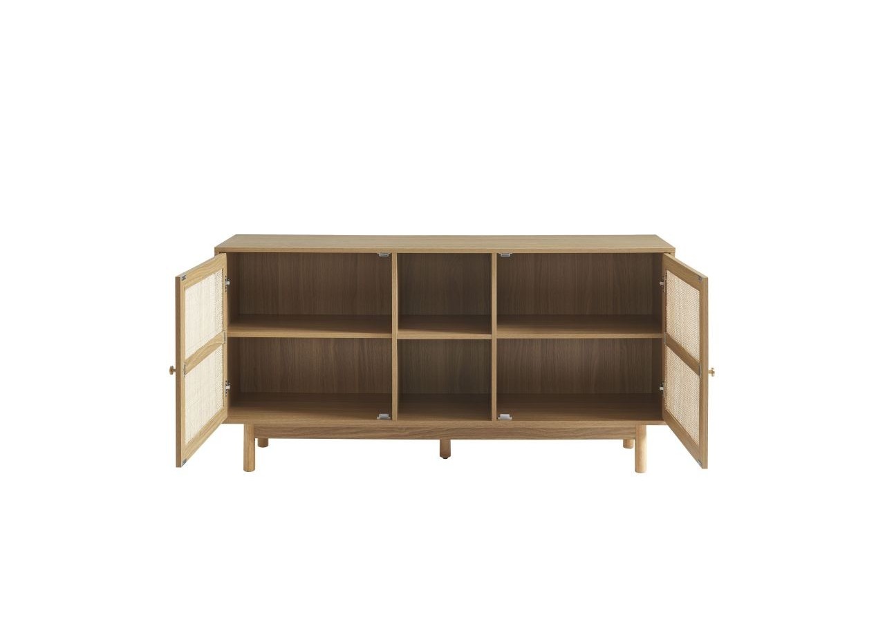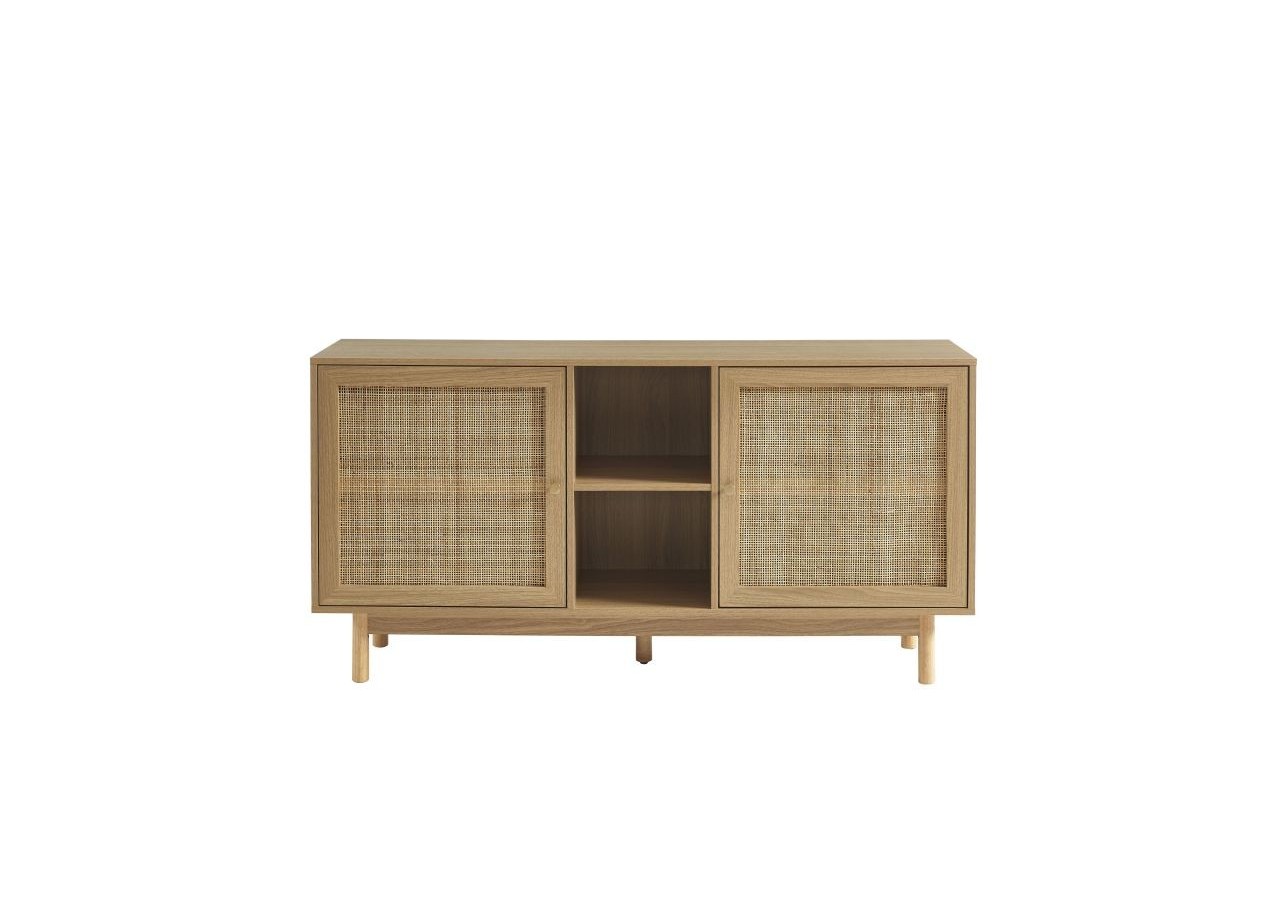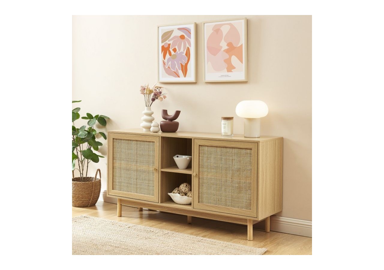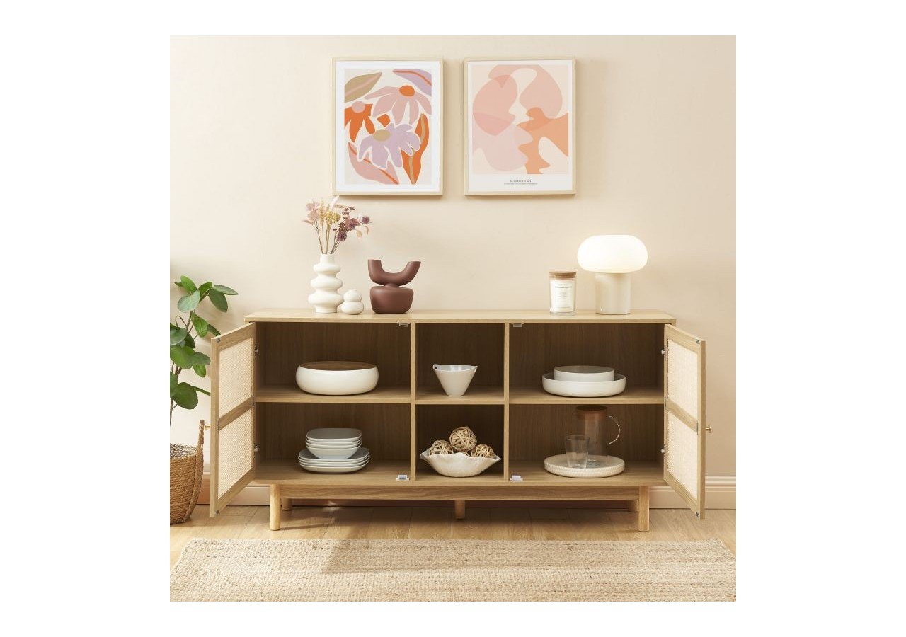 Outre son design, le buffet en cannage HELENA vous offre de nombreux espaces de rangement. Les deux niches centrales offrent un espace organisé pour y déposer vos livres ou objets décoratifs. Tandis que les deux portes laissent place à deux étagères vous permettant de ranger votre vaisselle ou linge de maison. Avec ses 150 cm de longueur, le buffet en cannage HELENA est une solution idéale pour ajouter des espaces de rangement pratiques dans votre salon ou salle à manger. Il est conçu pour combiner fonctionnalité et esthétique, sans compromis.