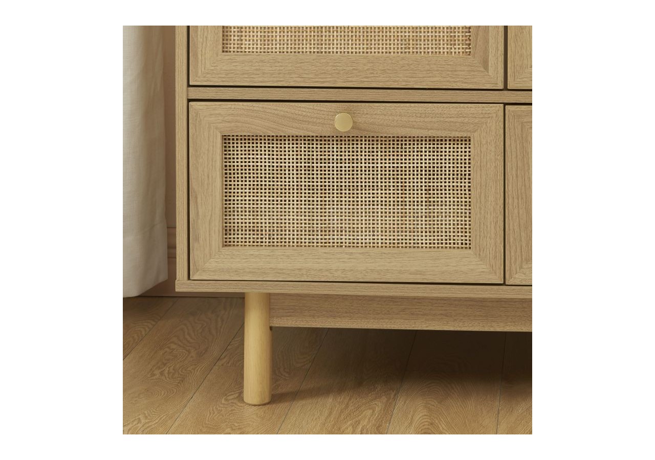 Les poignées en laiton doré apportent une note subtile à ce meuble naturel et raffiné. Ce sera la touche qui fera de votre armoire un modèle original. L'alliance du laiton doré et du cannage circulaire rendent cette armoire design et moderne. L'armoire HELENA sera la pièce phare de votre chambre.