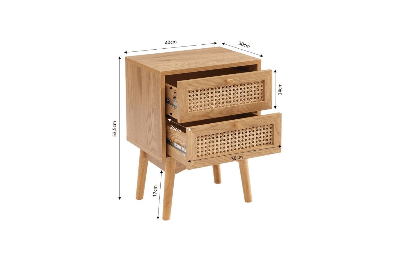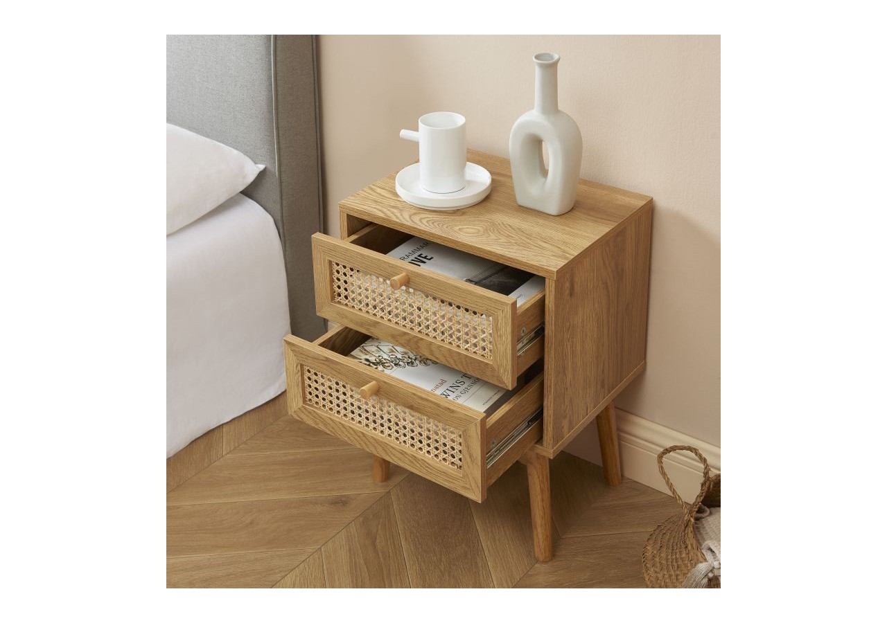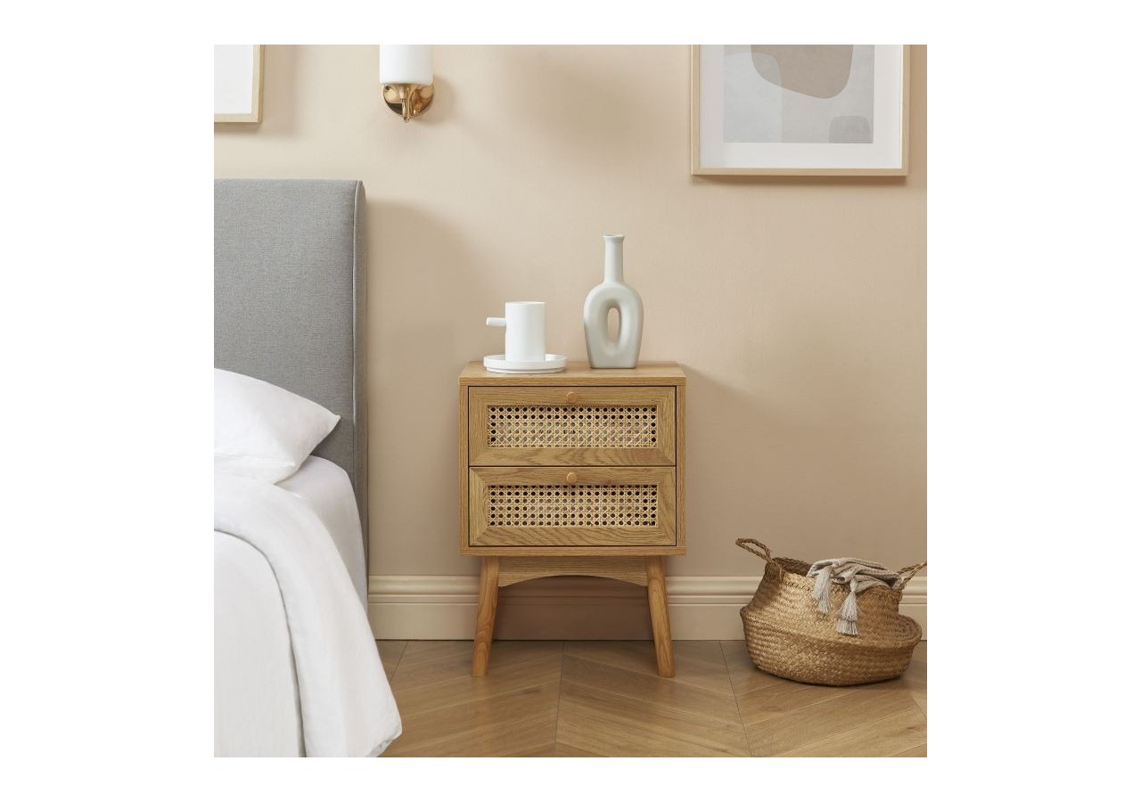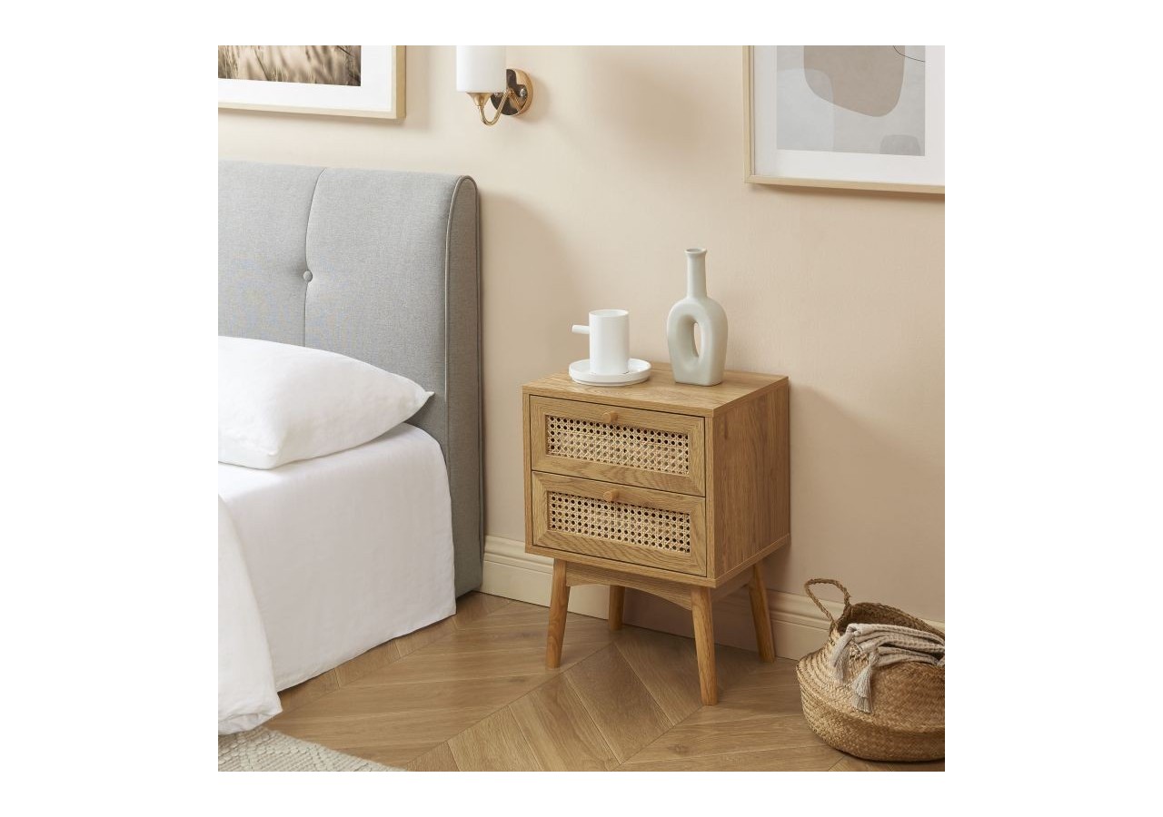 INÈS est un must-have pour une pièce au style rétro. Avec ses 2 tiroirs en cannage rotin circulaire, cette table de chevet ira à merveille dans votre chambre, lui apportant la touche vintage que vous aimez tant !