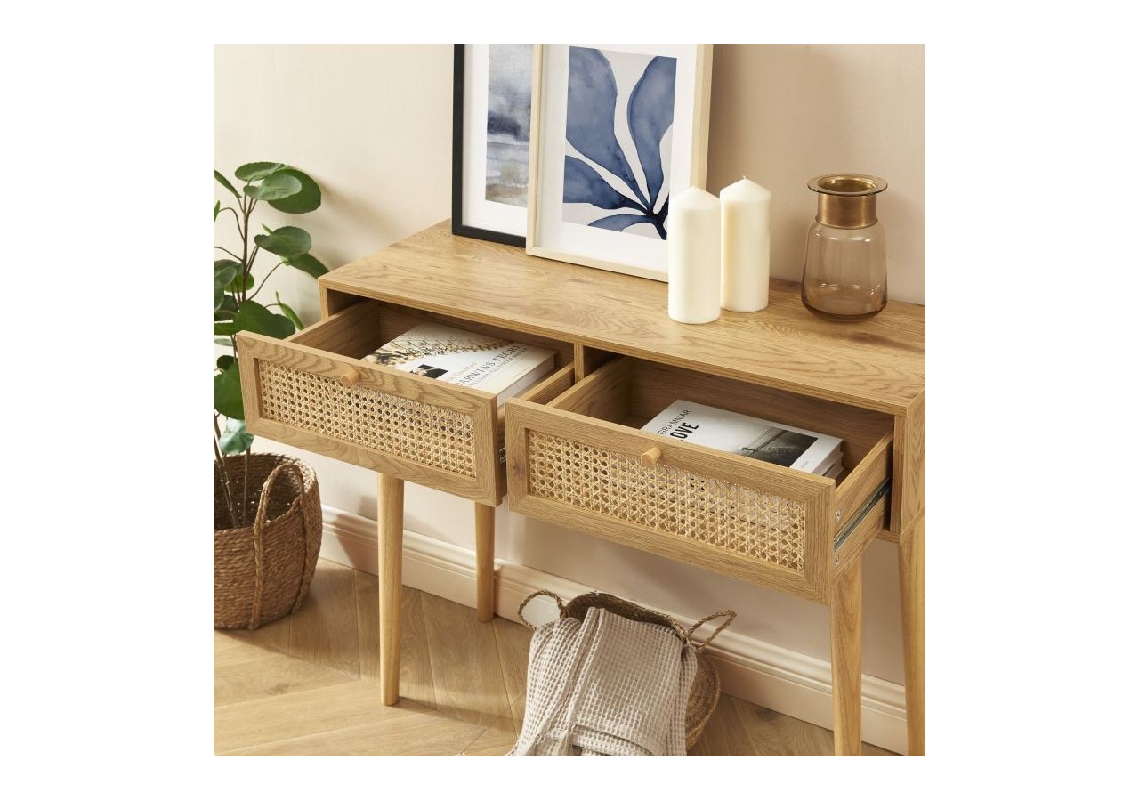 INÈS est un must-have pour une pièce au style rétro. Avec ses 2 tiroirs en cannage rotin circulaire, cette console ira à merveille dans votre entrée, votre pièce de vie ou encore votre chambre. Cette dernière vous apportera de nombreux espaces de rangement.