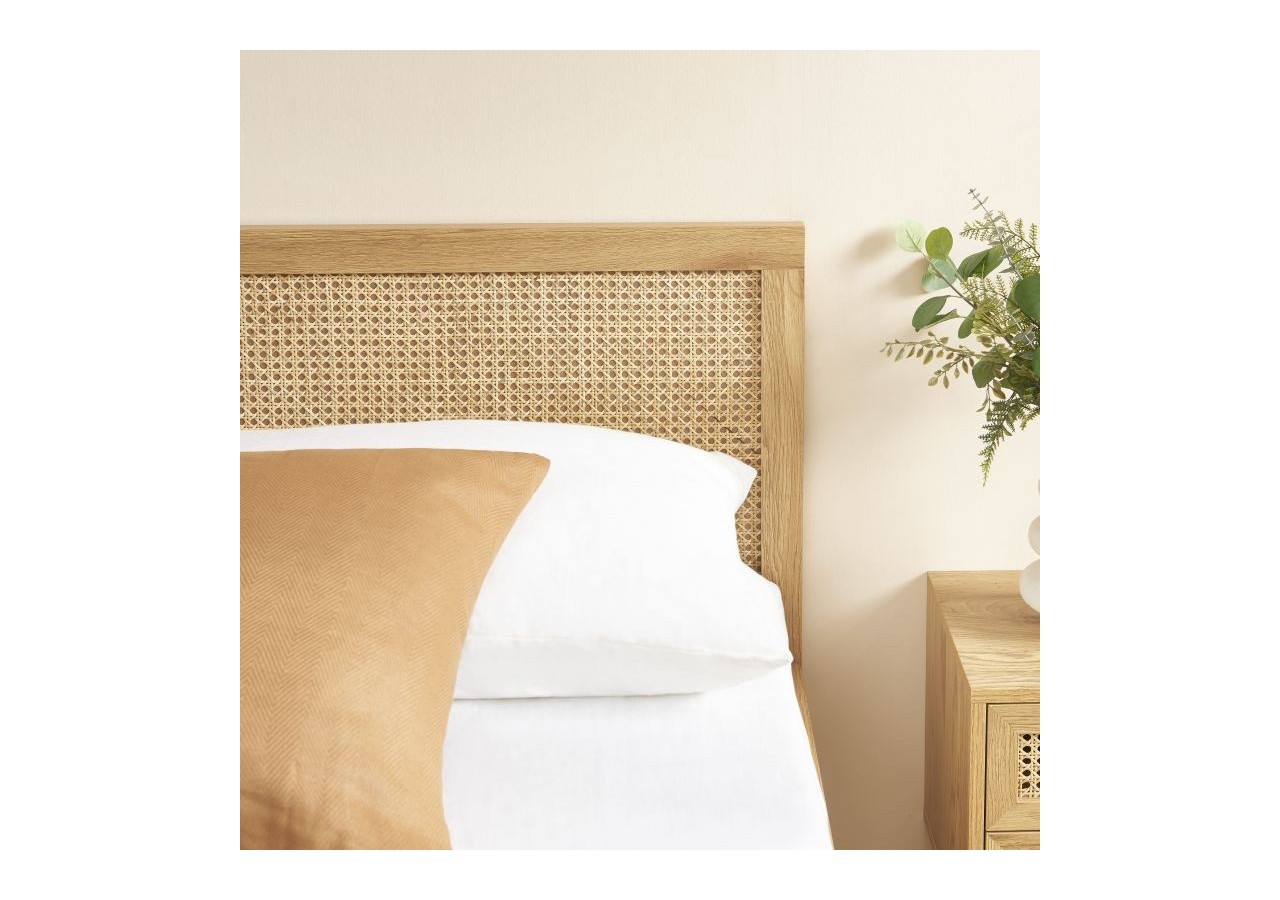 Le choix de l'effet chêne clair pour le cadre confère une sensation de chaleur, très agréable pour une chambre. La tête de lit en cannage, quant à elle, ajoute une touche bohème au lit INES. On apprécie ce design simple et minimaliste, invitant à la détente. Le lit INES est conçu pour s'adapter à tous les styles de décoration, s'intégrant parfaitement dans diverses ambiances.